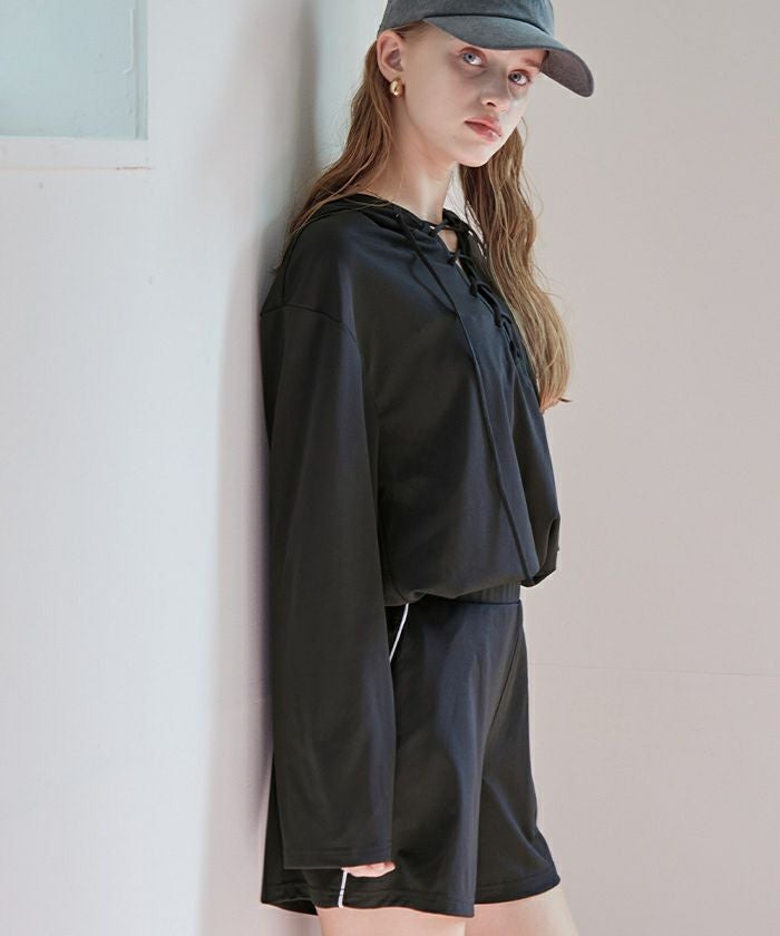2点セット/レースアップフーディーラッシュガード×ショートパンツ【SEADRESS シードレス】