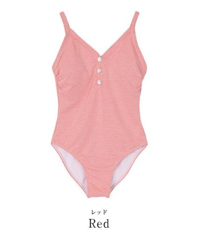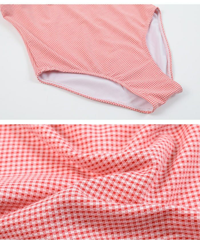 ・細やかなギンガムチェック柄が目を惹く、レトロ可愛いワンピース水着。