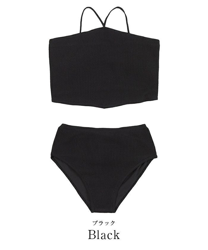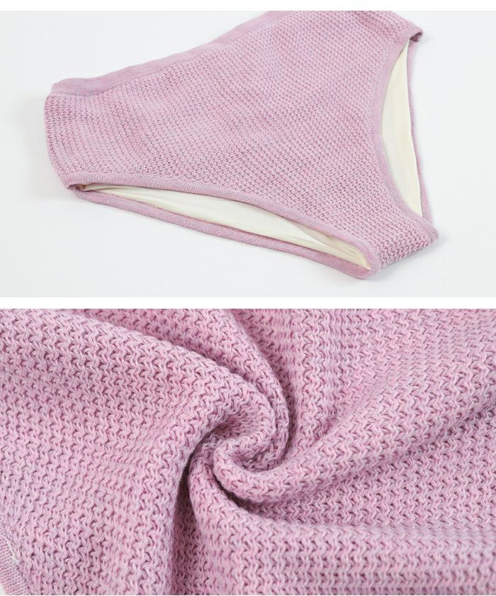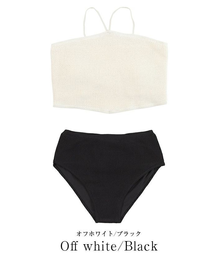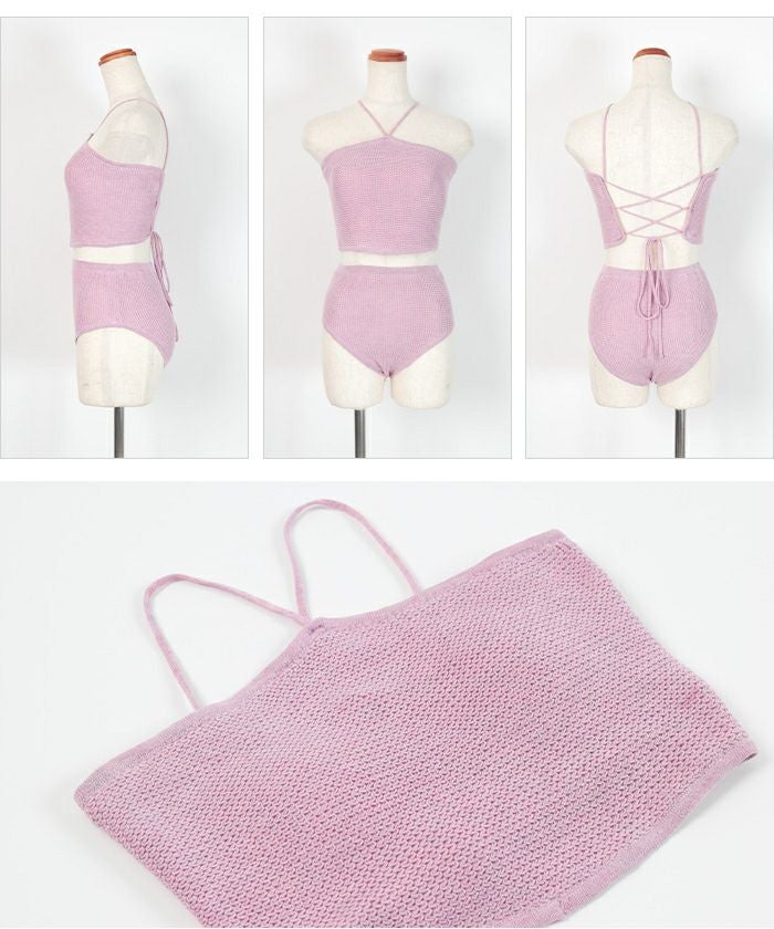 ・デコルテをきれいに見せるXホルターデザインが大人らしいバックレースアップニットビキニ。