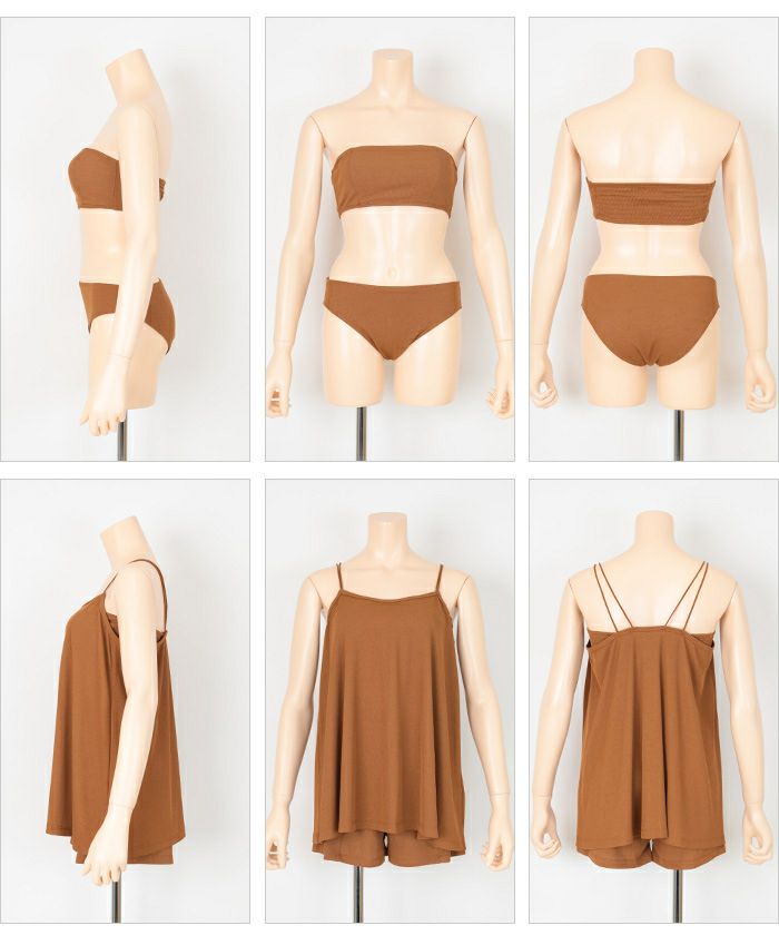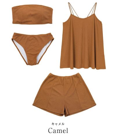 ・フレア感がきれいなAラインキャミソールとショートパンツ付きの4点セットシンプルビキニ。