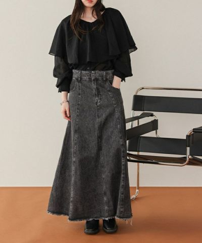 ハイウエストボリュームフレアデニムスカート