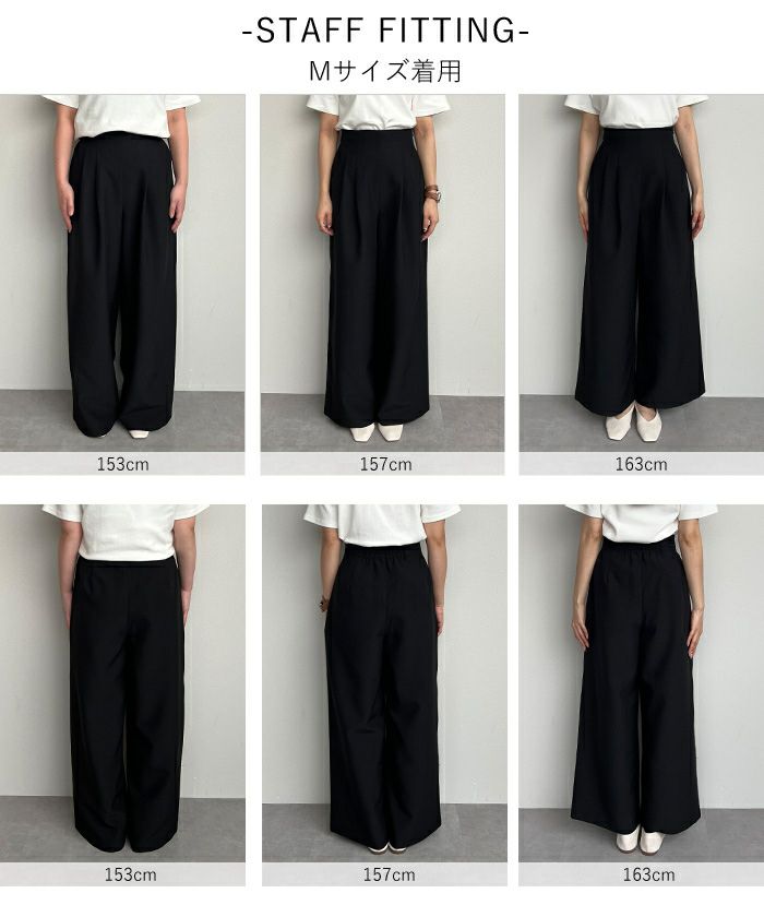 153cm、細身なので、少し厚めのカットソーをインしないと少し下がってしまい、それに伴って裾がスニーカーだとギリギリか、スニーカーによっては少し擦れてしまう。 ヒール有りの靴を履けばそこは大丈夫そうですが、、 色味は綺麗な落ち着いたイエローで気にいっています。生地もサラっと涼しげで子育て中も動きやすいので買って良かったです。