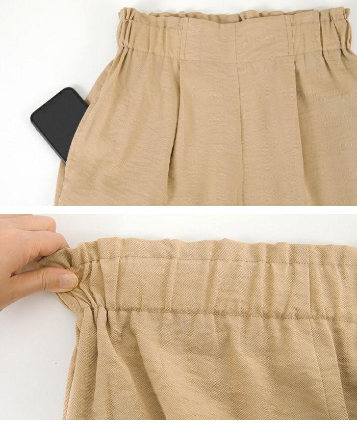 ・適度な分量感のワイドシルエットとゴム仕様で楽な着心地を叶えます。