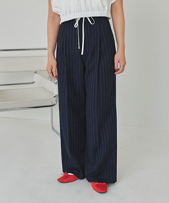 ストライプで足長効果 カジュアルな中にも辛口な要素ありで、可愛いトップスでもなんかオシャレな感じ