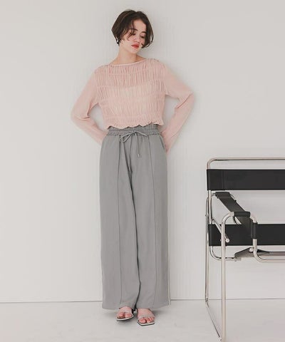・ウエスト部分を外側にめくると紐が見える仕様になっており、フリルのようなデザインに見えて程よく女性らしい雰囲気を楽しんで頂けます