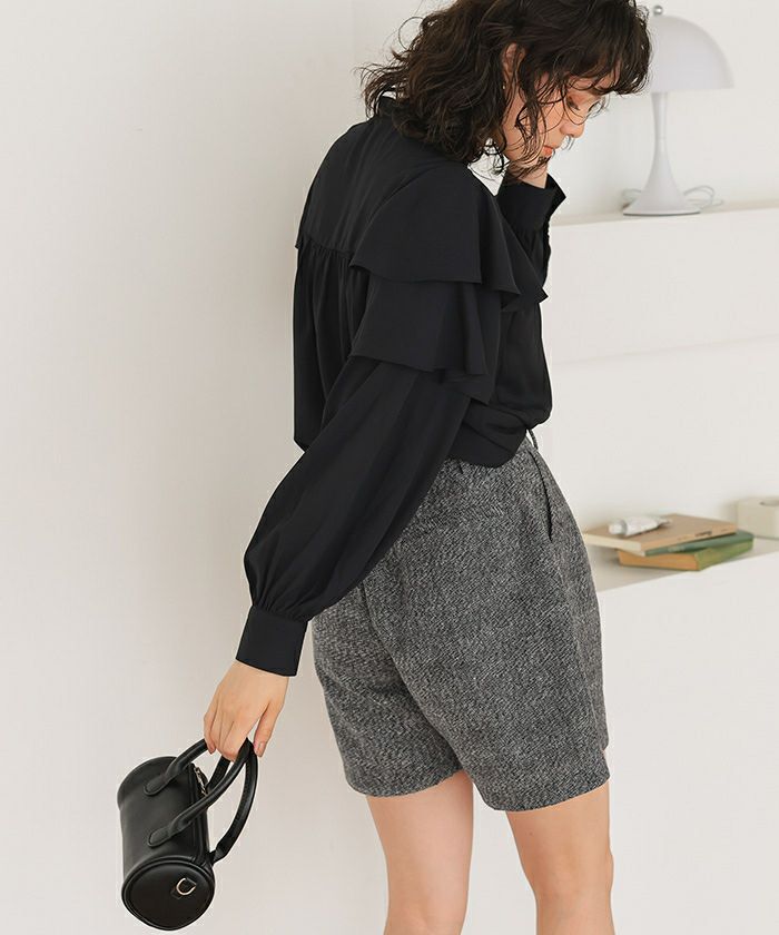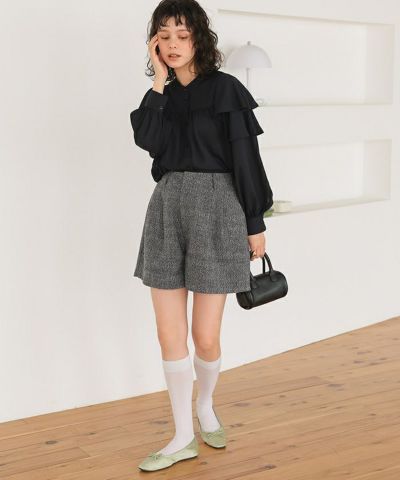 ボリューム感のかわいいショートパンツ。トップスでスッキリしたものを合わせるとメリハリがでていい感じに着られる気がします。