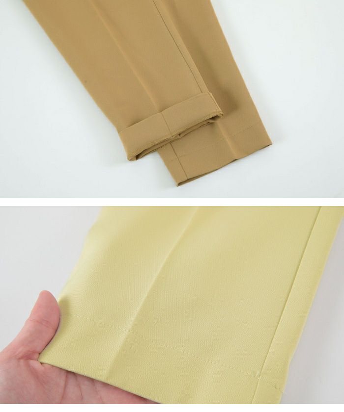 ・シンプルなデザインで着回し力抜群のフロントタックテーパードパンツ。
