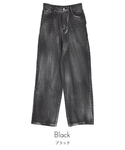 ・トレンド感のある箔加工が施された一癖あるデニムパンツ。