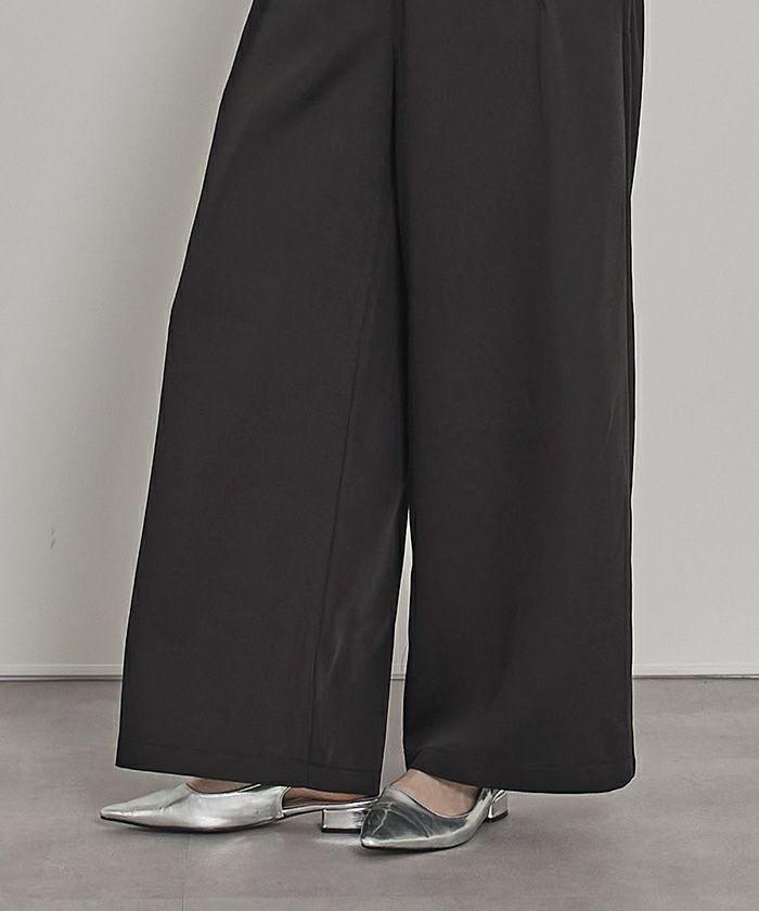 ・サイドリボンとフロントジップがアクセントになったワイドパンツ。