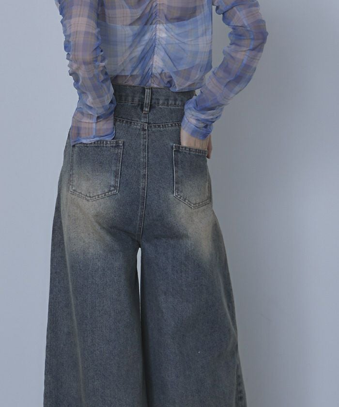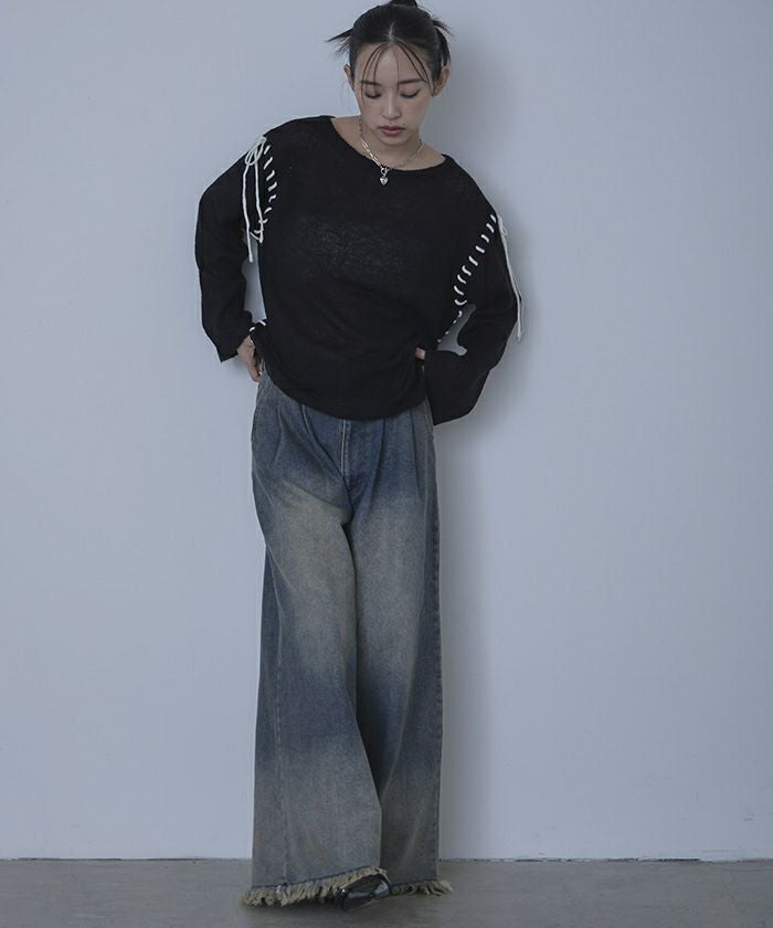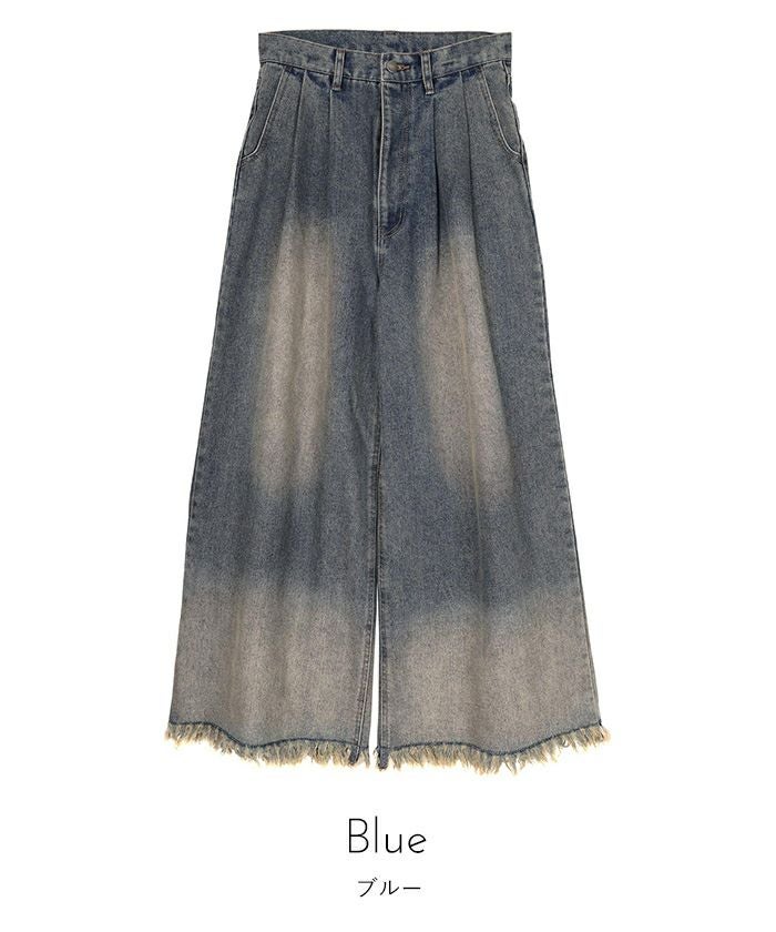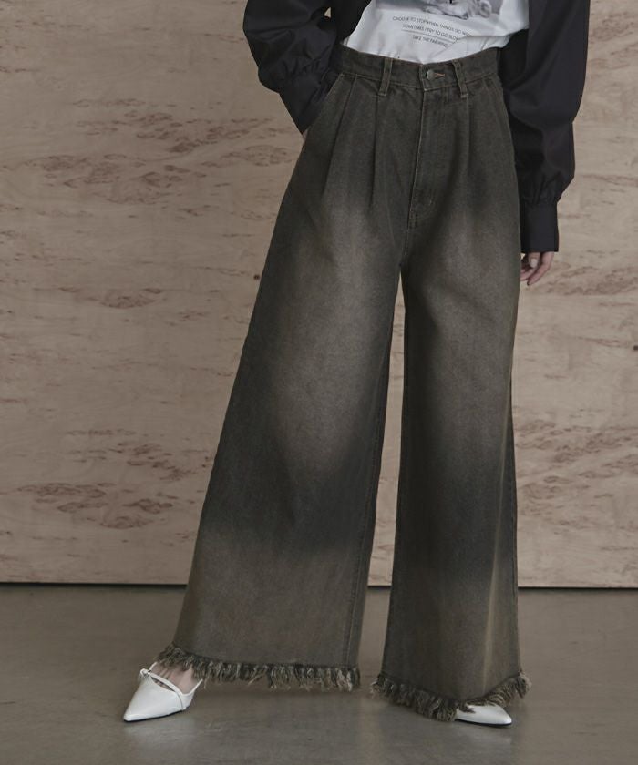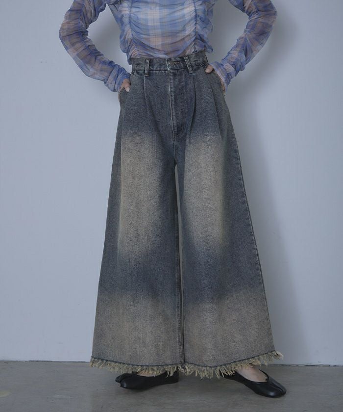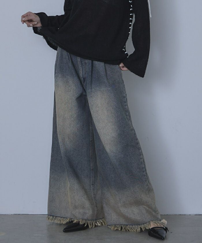 裾フリンジオーバーダイデニムワイドパンツ【miette ミエット】