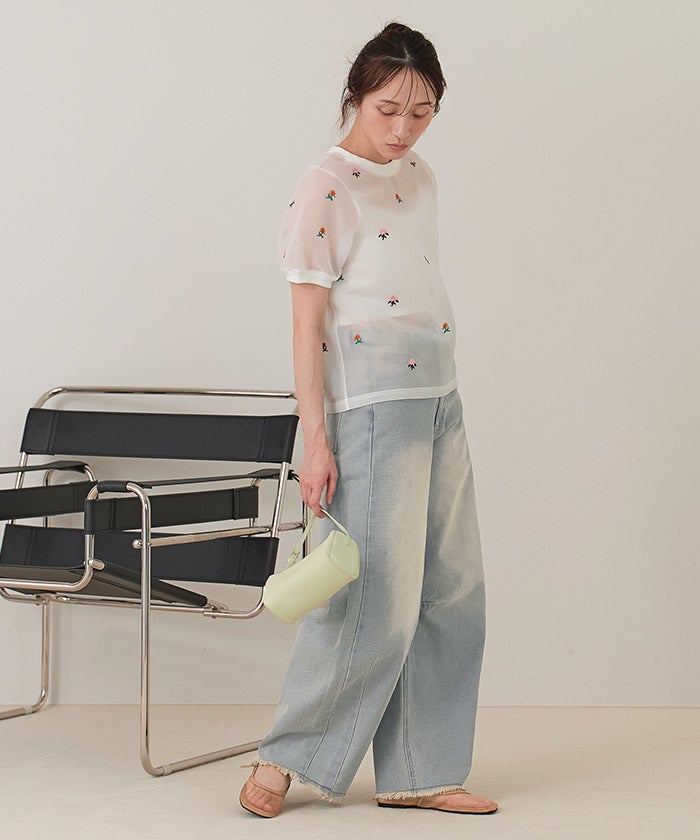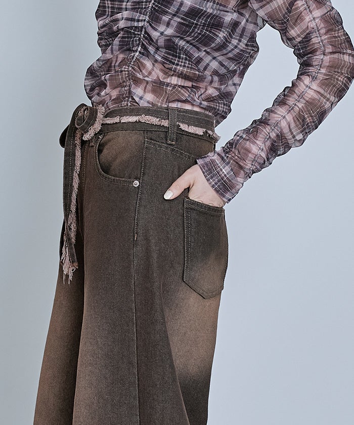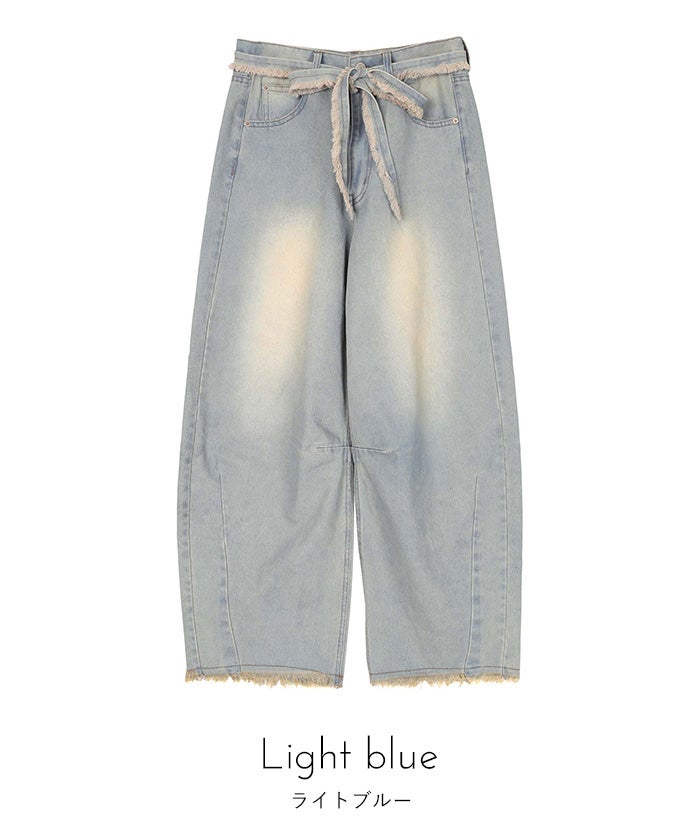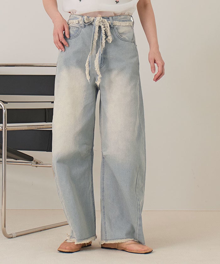 ウエストリボンカーブラインデニムパンツ【miette ミエット】