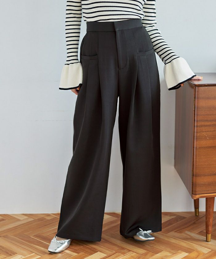 他の画像を見る 【2026ceremonycollection】 【低身長さん向けサイズ有り】【titivate】【IGTV】 ストレッチ美脚タックワイドパンツ 価格 ¥ 5,489 税込 お気に入りに登録する