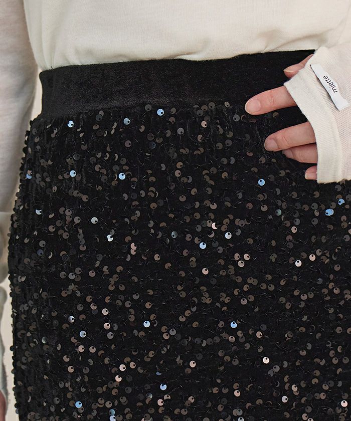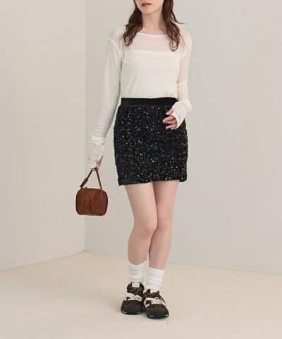 ・トレンドのスパンコール素材を使用したミニスカート。