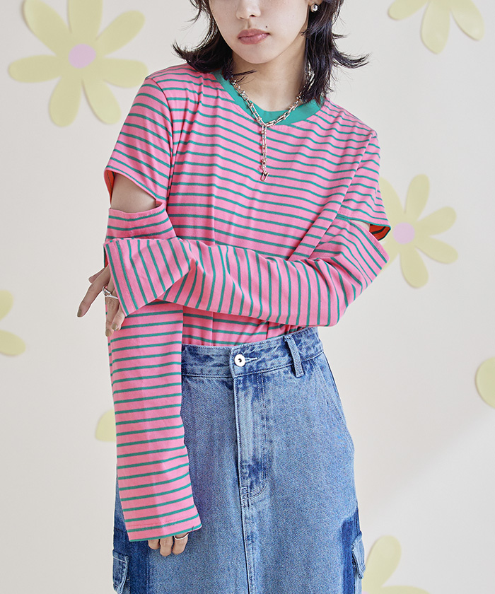 ・ブリーチ加工による濃淡で柄を出したデザインが魅力のデニムスカート。