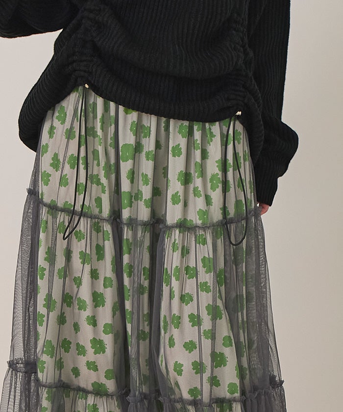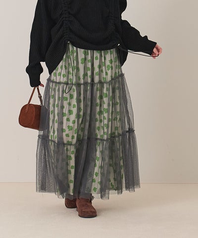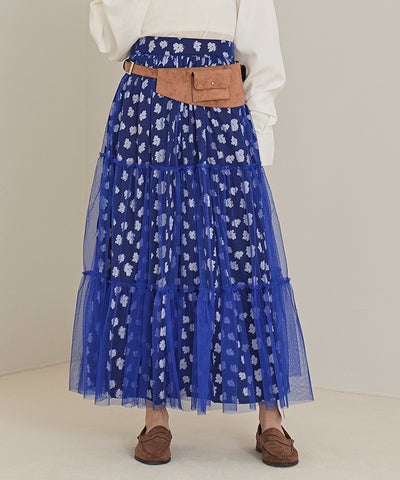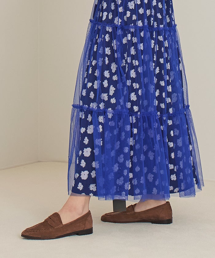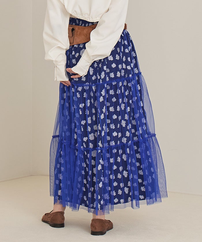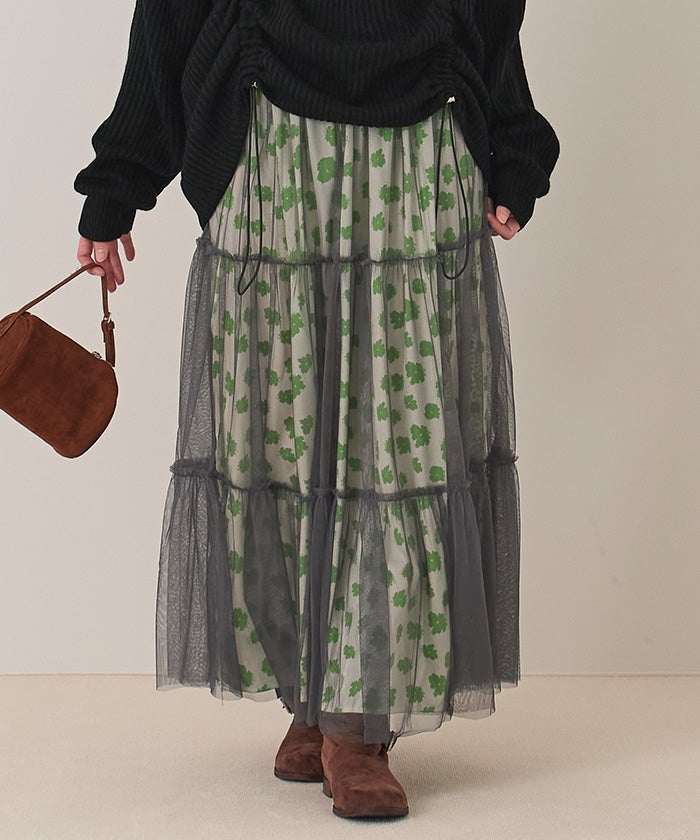 ・花柄のティアードでも甘くなり過ぎないのがポイント。