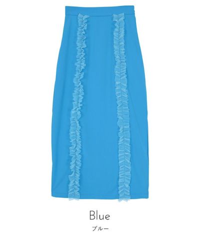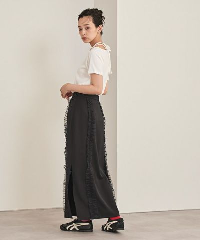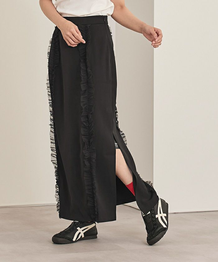 ・チュールフリルが前後についたロングスカート。