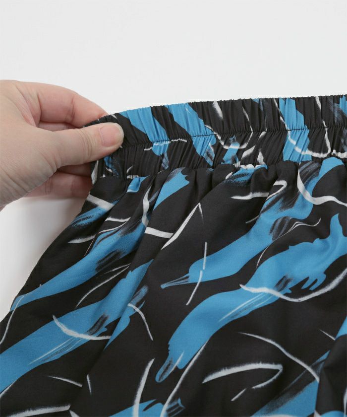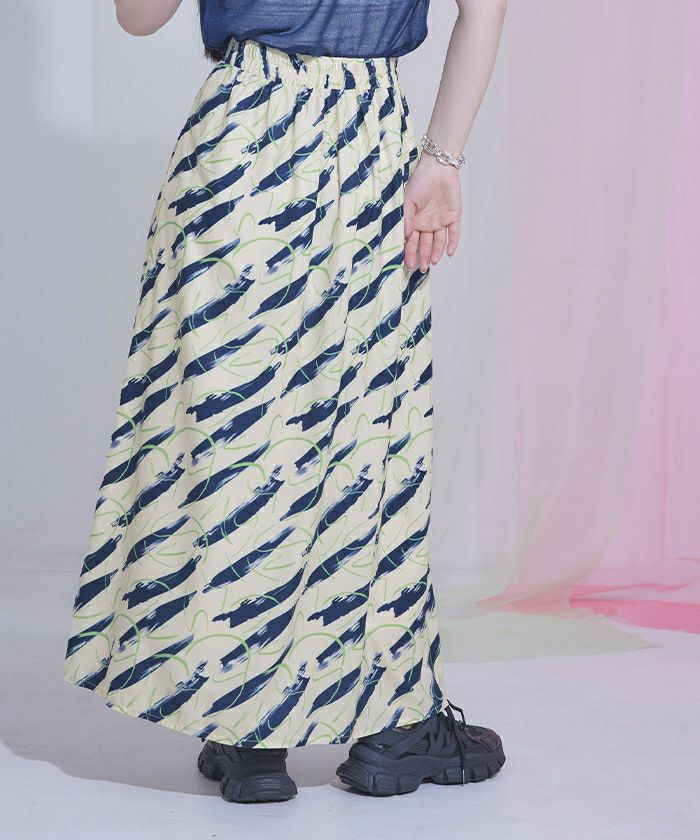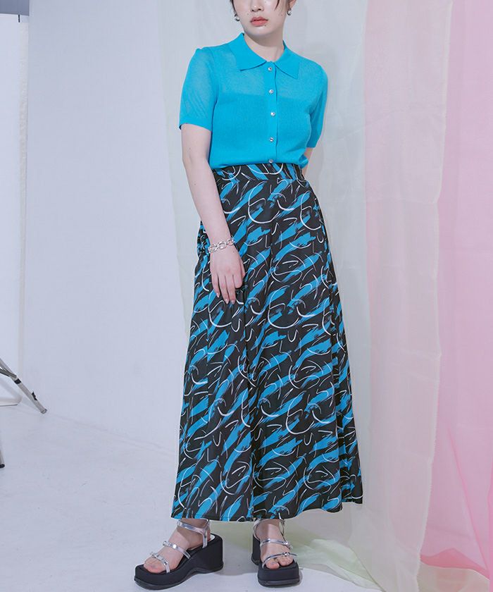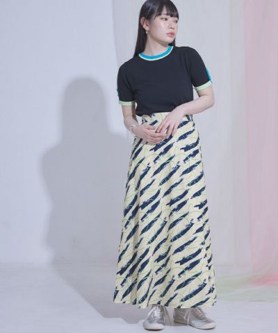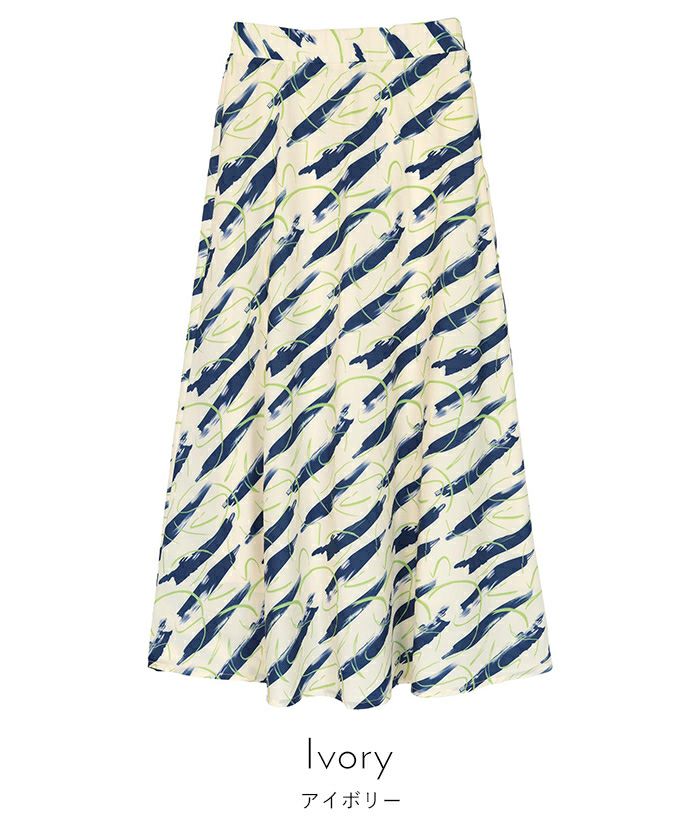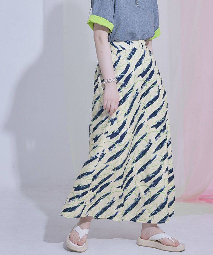 ・大胆なプリント柄のフレアスカート。