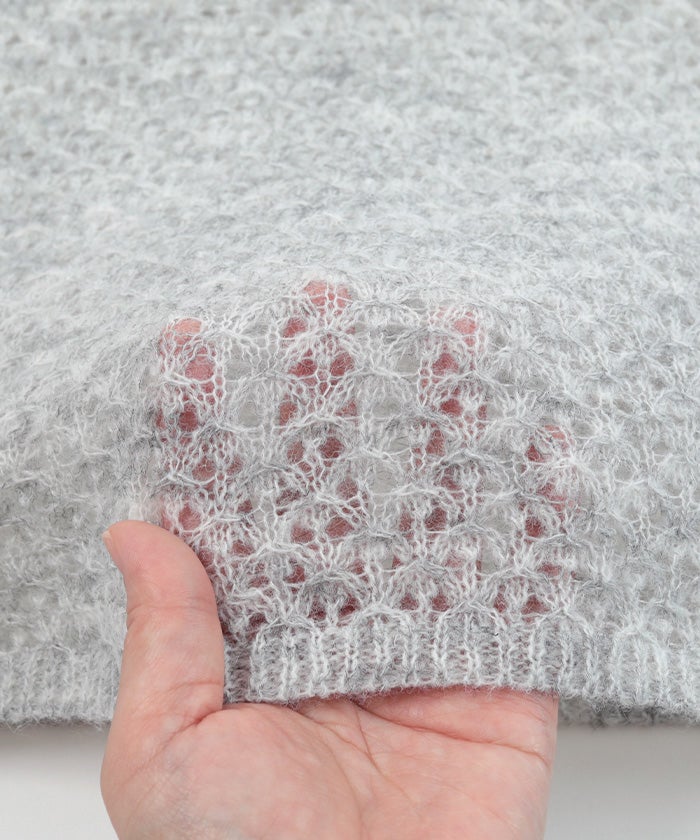 ・程良い透け感の編地で重たく見えず、ニット素材とのレイヤードもしやすいです