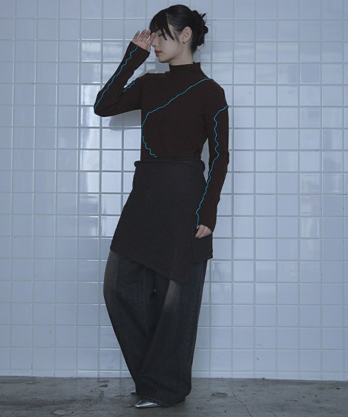 ・ニット素材のラップレイヤードスカート