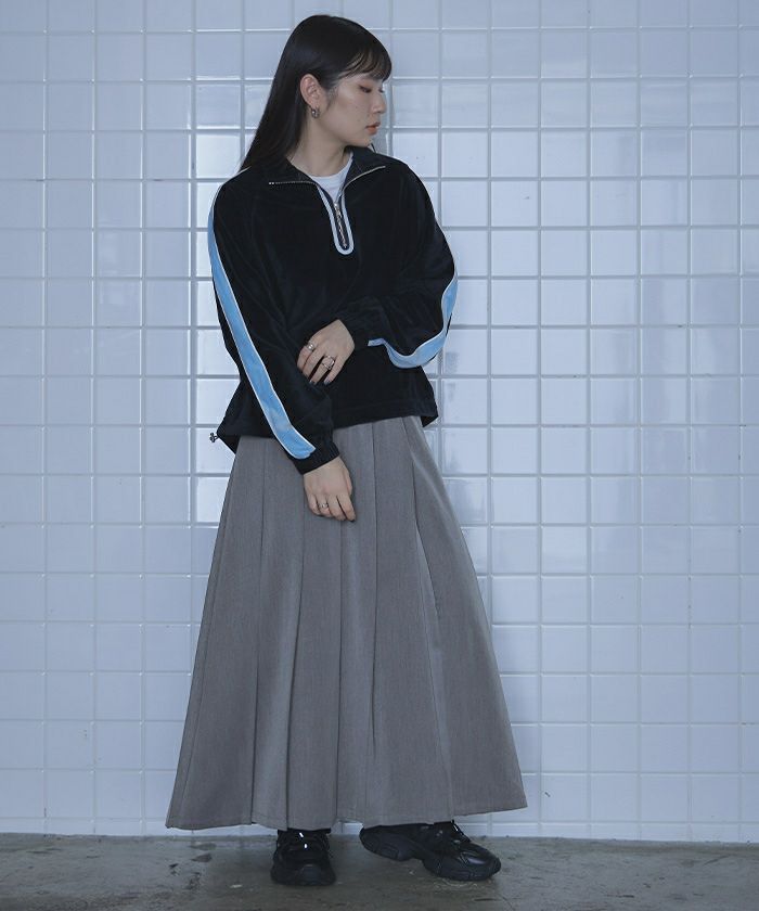・太めのプリーツがトレンド感のあるロングスカート