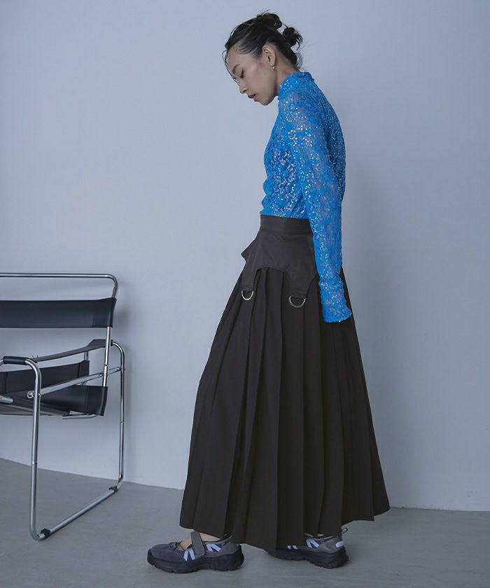 この製品はプリーツ加工を施してあります。この加工は永久的なものではなく、着用やクリーニングの繰返しによって次第にプリーツが消失する可能性があります。保管の際はプリーツを伸ばさないようにご配慮下さい。