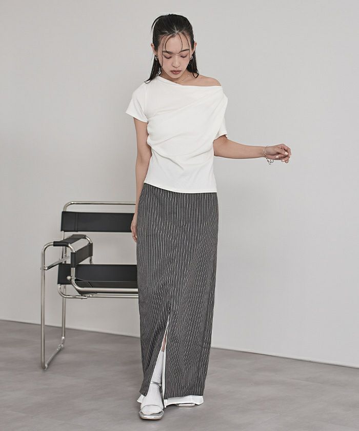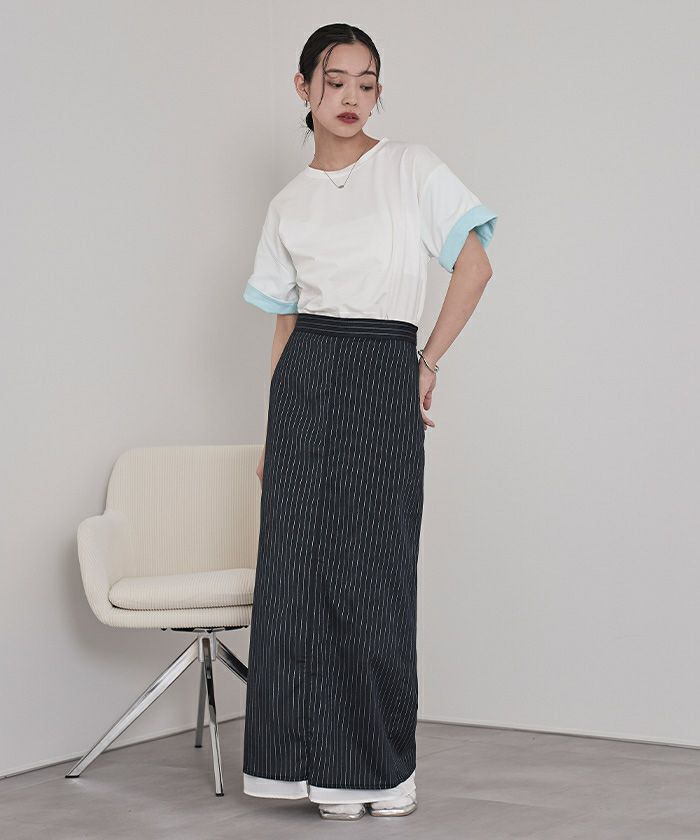 ・シンプルで洗練されたピンストライプ柄が特徴的なタイトスカート