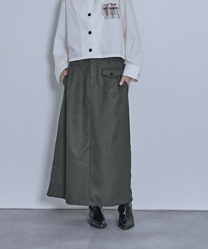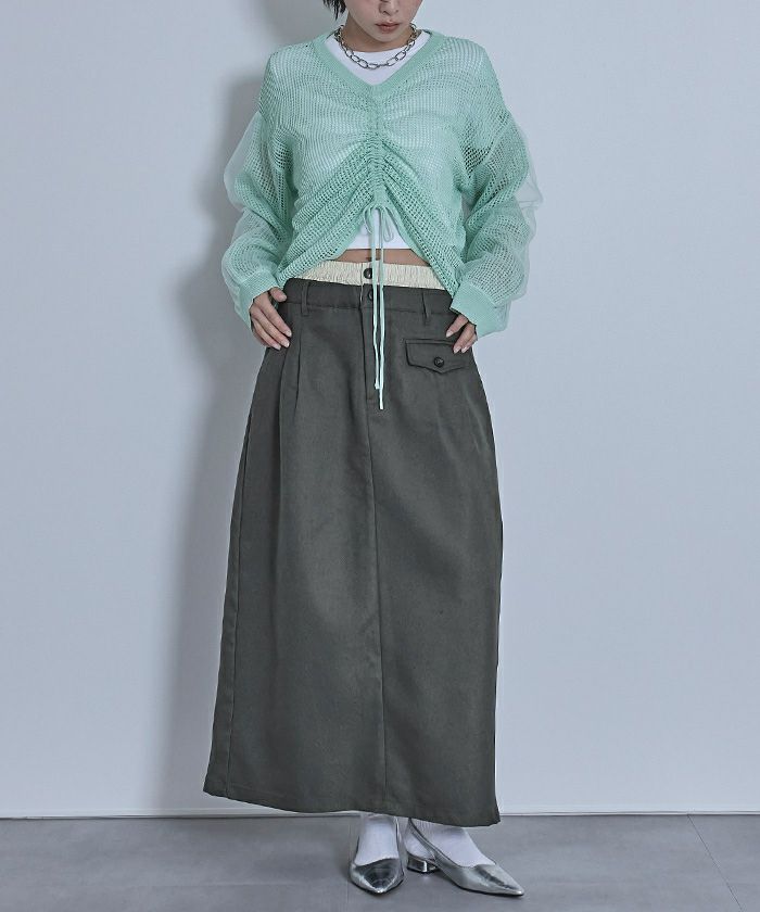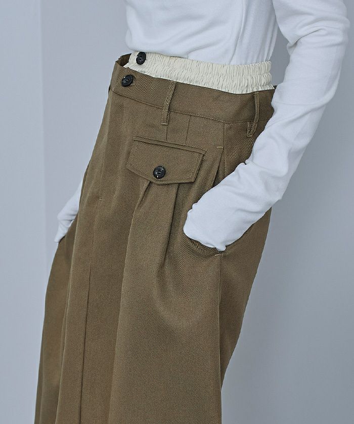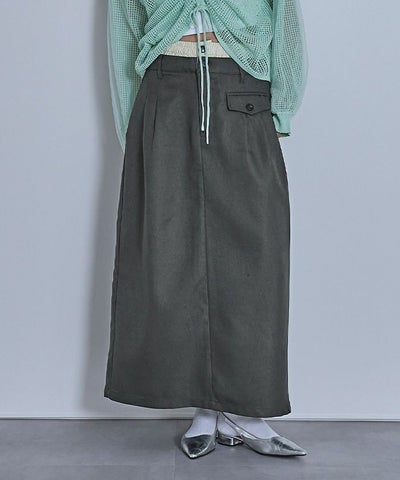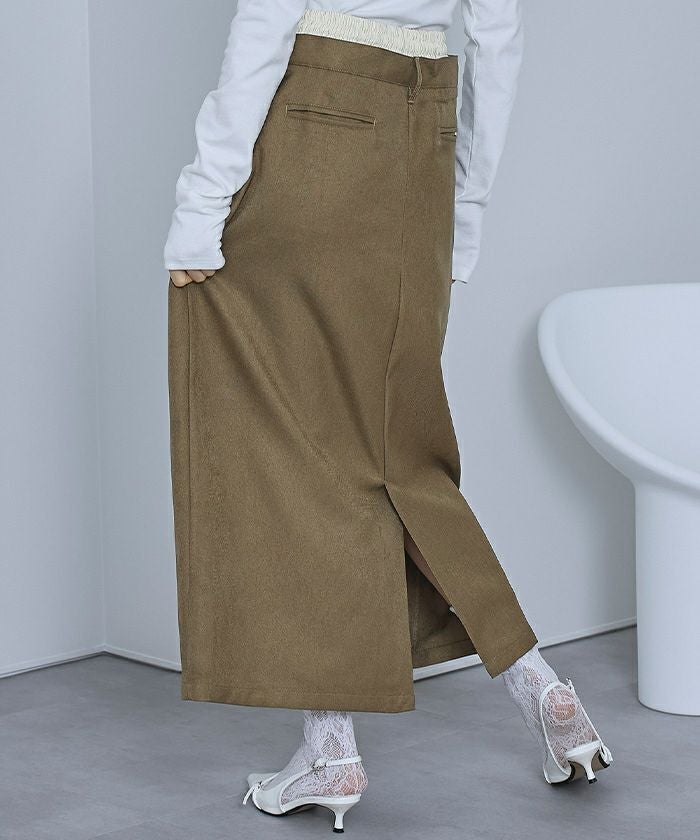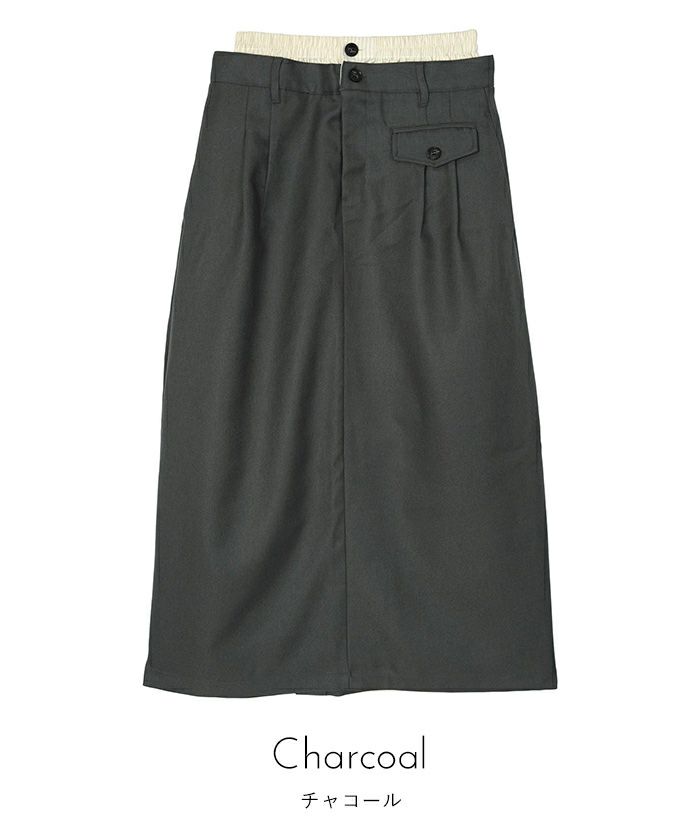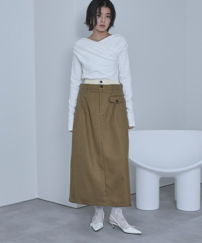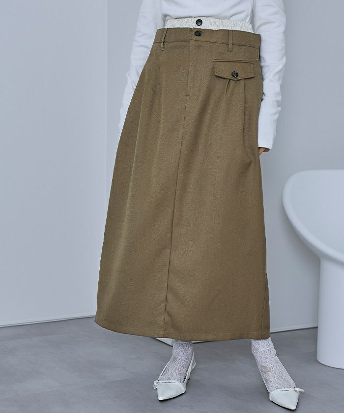 ・レイヤード風のダブルウエストがトレンド感たっぷりのロングスカート