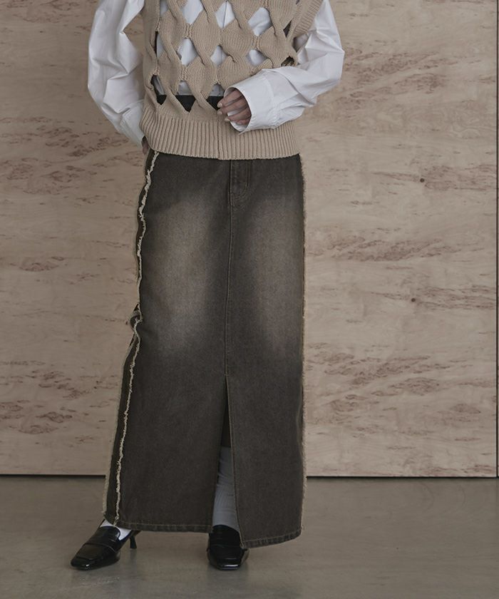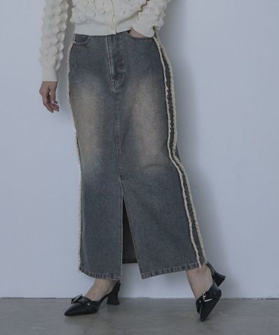 サイドフリンジオーバーダイデニムスカート【miette ミエット】