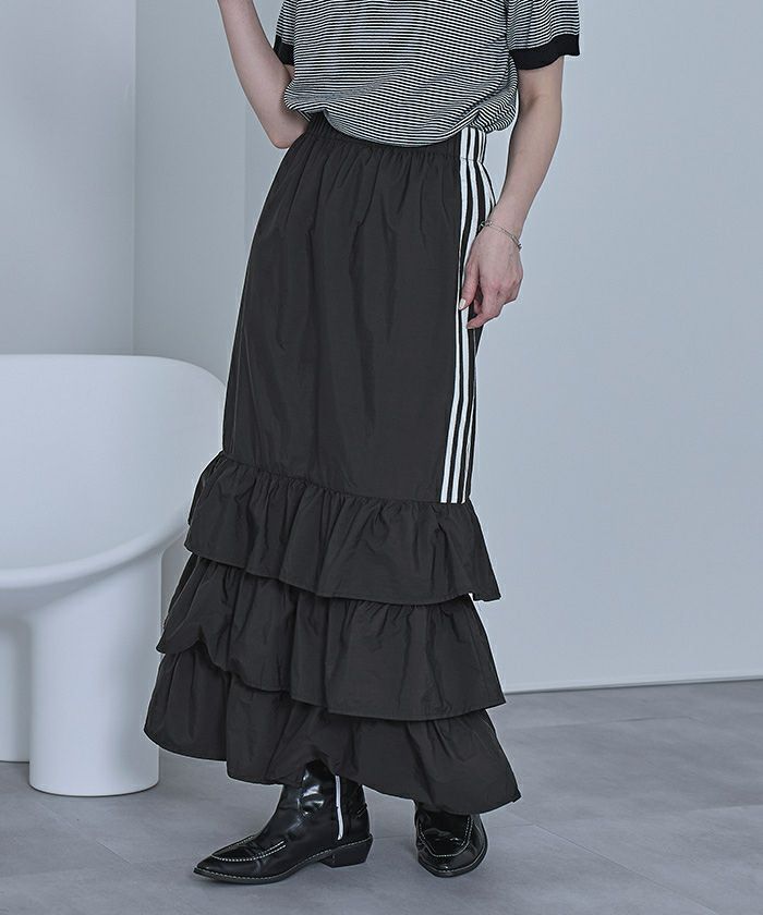 ・ナイロンのシャカシャカした素材なので、甘くなりすぎない印象に◎