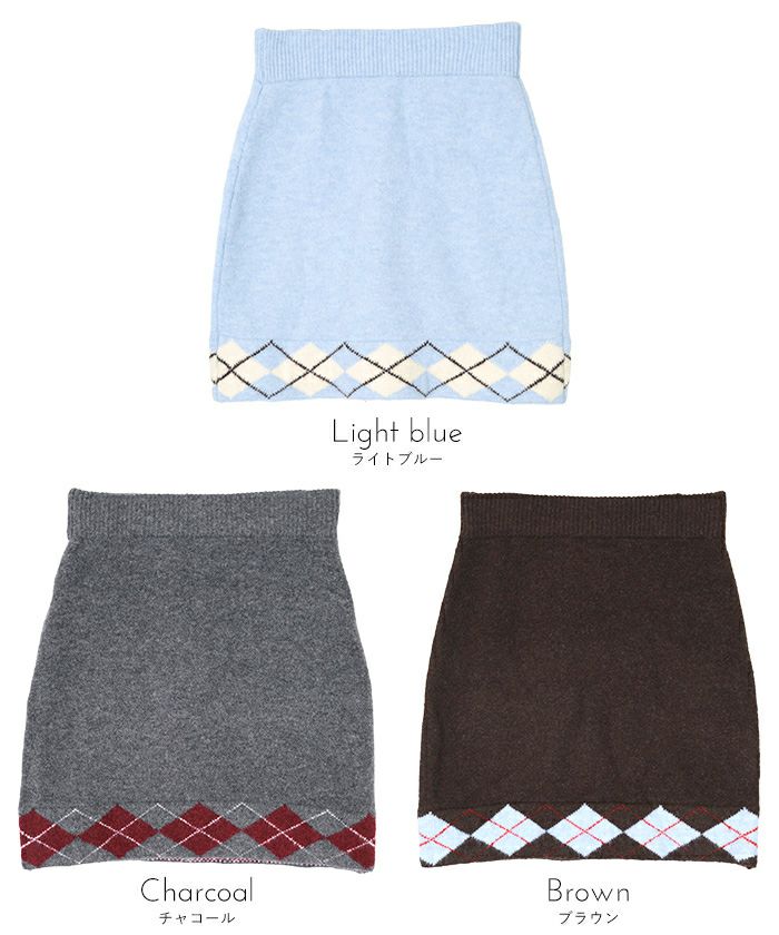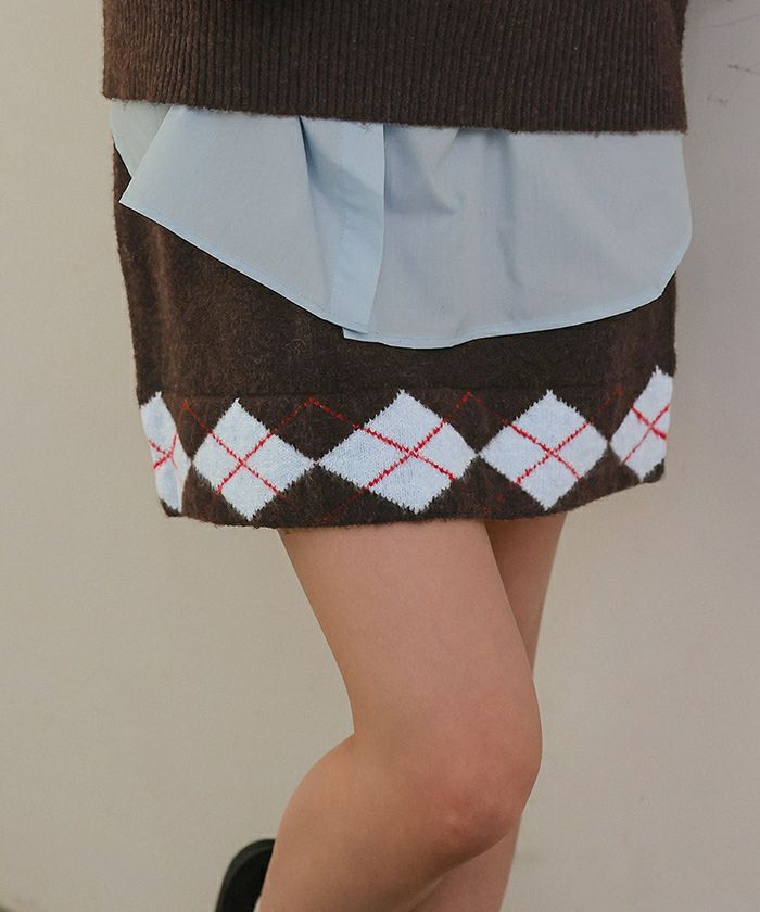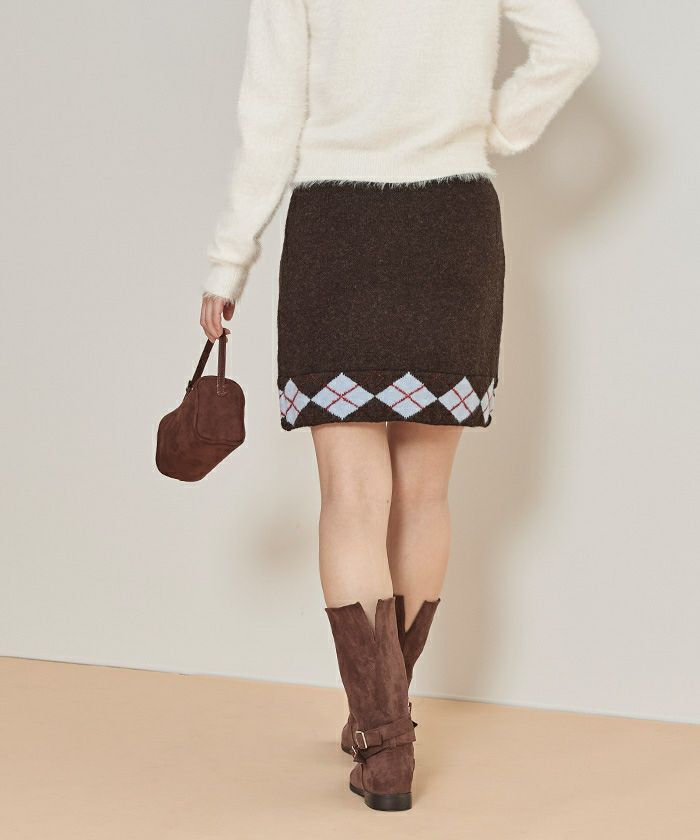 ・裾のアーガイル柄がポイントのニットミニスカート
