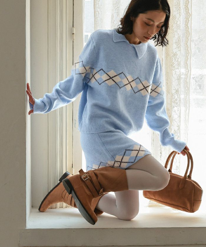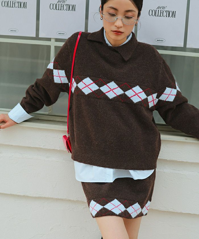 ・同素材アーガイルのニットとセットコーデも可能