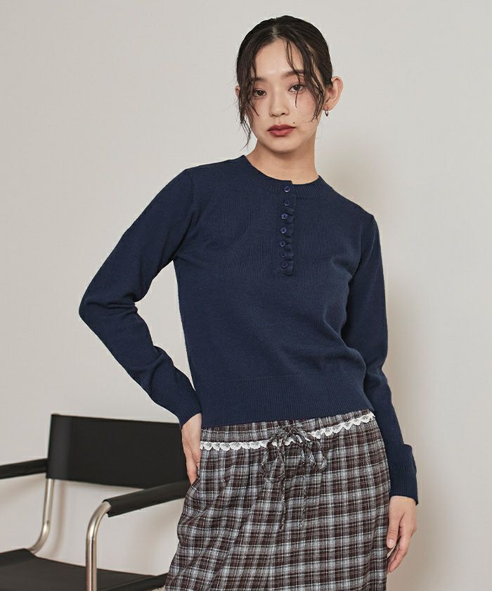 他の画像を見る ▼【miette】【期間限定★SALE】 フリルヘンリーネックニット【miette ミエット】【メール便可/100】 通常価格 ¥ 4,939 価格 ¥ 1,975 税込 お気に入りに登録する