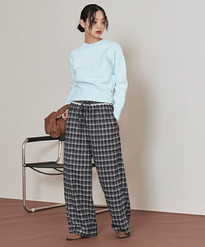 他の画像を見る ▼【miette】【人気インフルエンサー菅沼ゆりさんコラボ】【期間限定★SALE】 ウエストフリルチェックワイドパンツ【miette ミエット】 通常価格 ¥ 6,919 価格 ¥ 3,459 税込 お気に入りに登録する