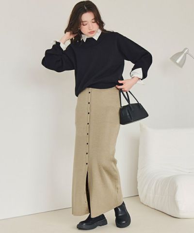 釦デザインIラインニットスカート