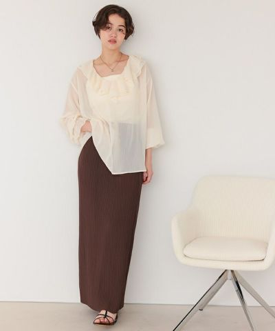 ・ストレッチ性のあるカットジョーゼット素材をプリーツ加工し、高見えしつつも楽な着心地が叶う素材使いにこだわりました