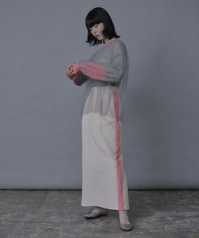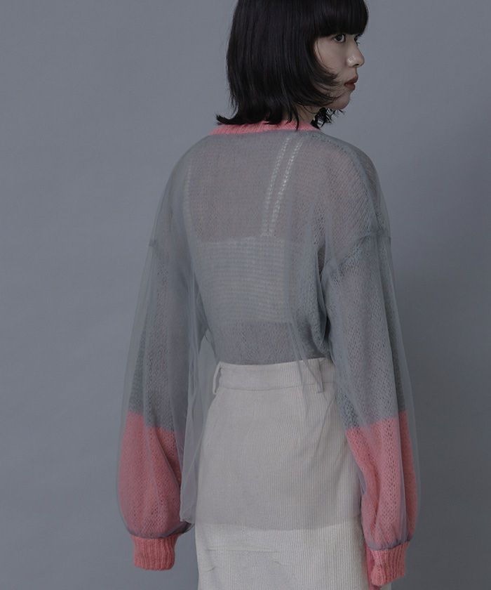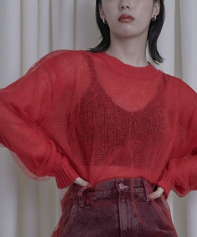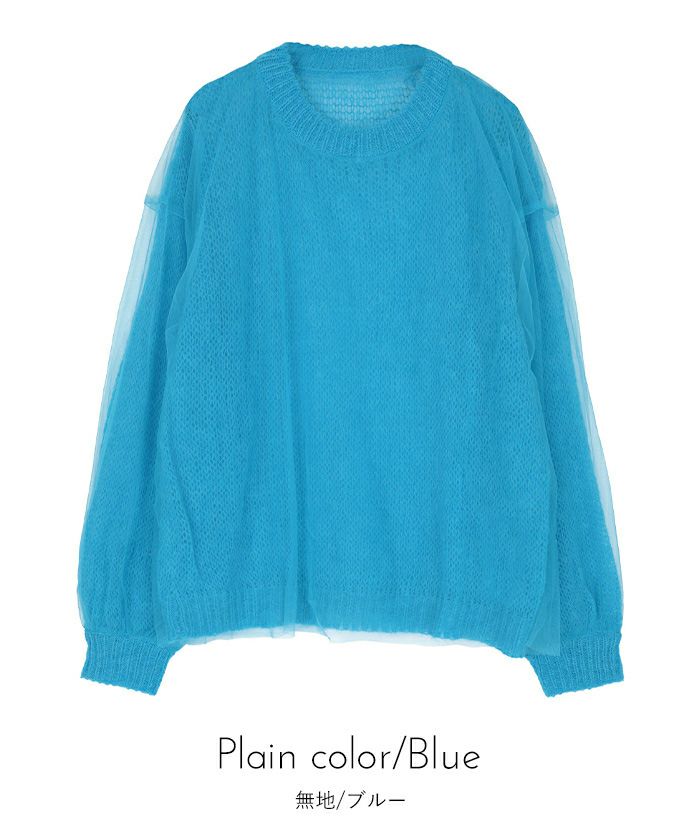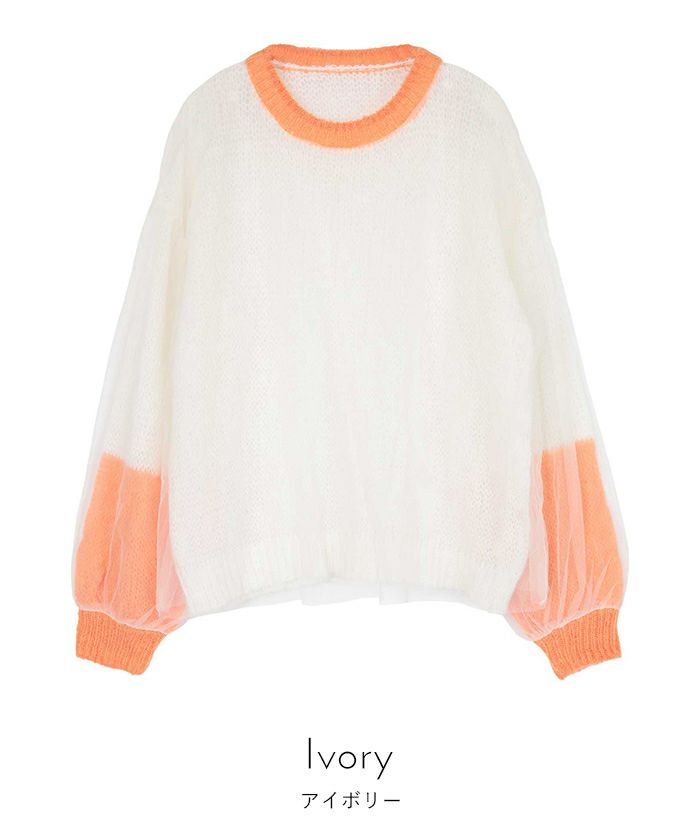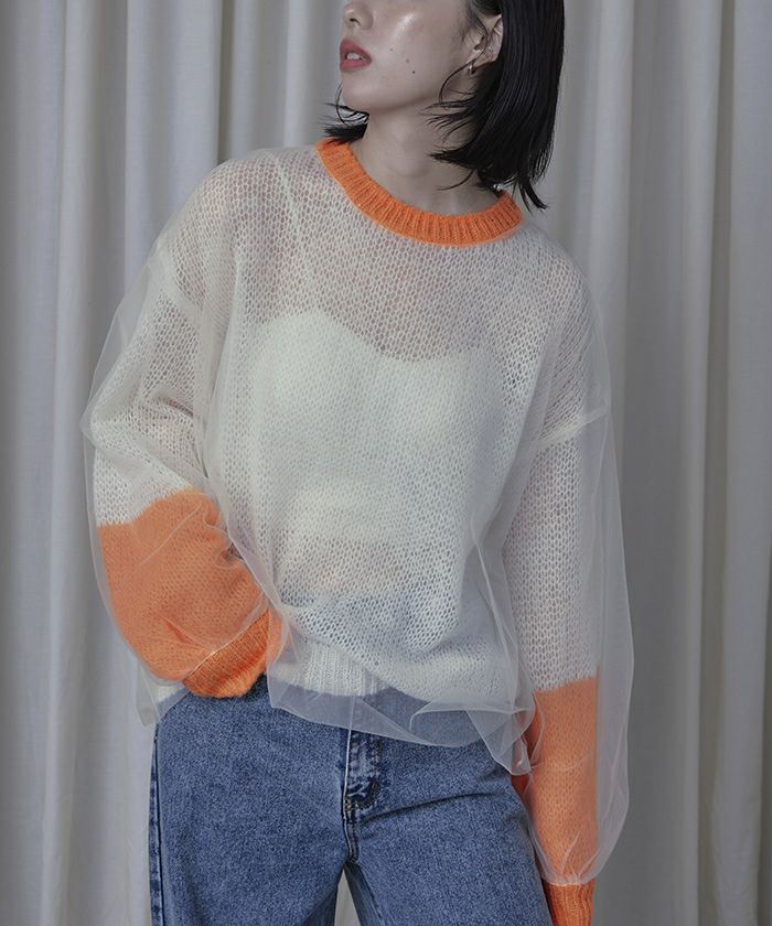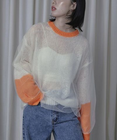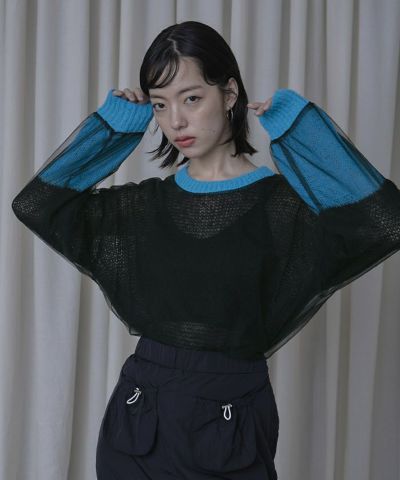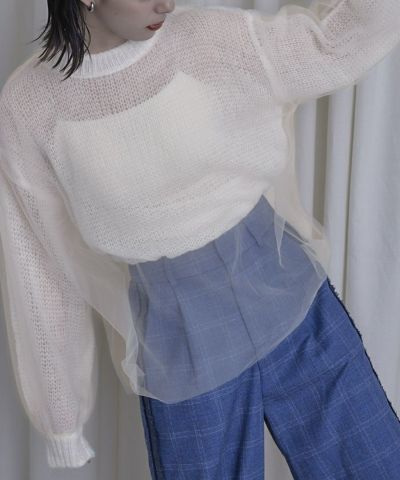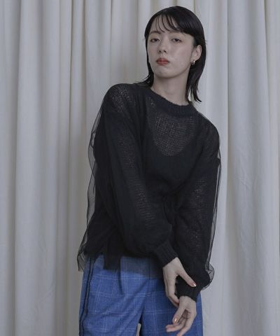 商品情報 ・ローゲージニットにチュール素材がドッキングされたニット。