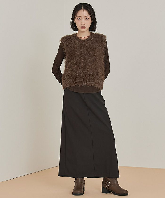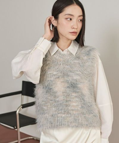 ・軽やかな素材感が魅力のMIXシャギーニットベスト