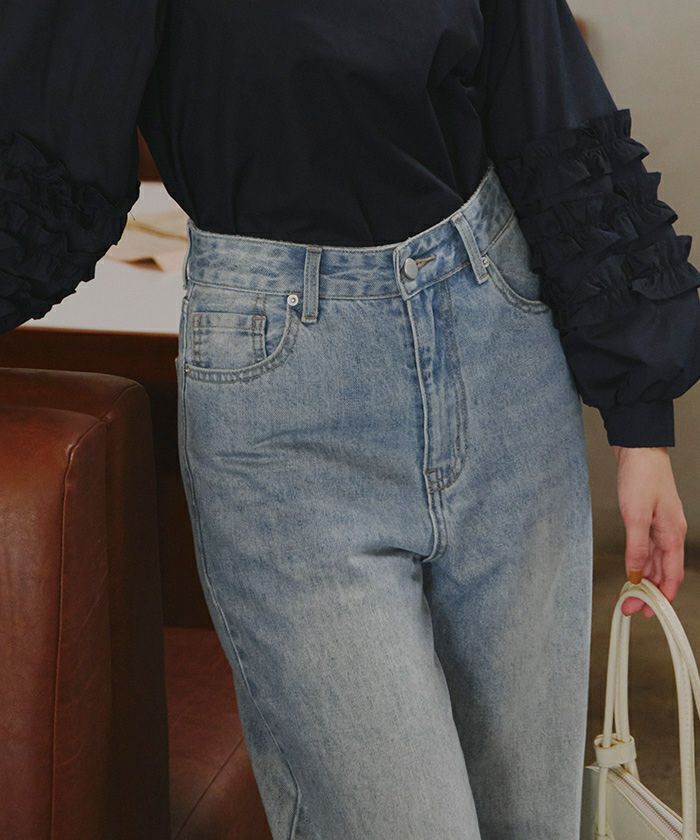 ・程よいワイドシルエットでカジュアルに着こなせるデニムパンツ。