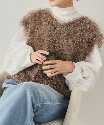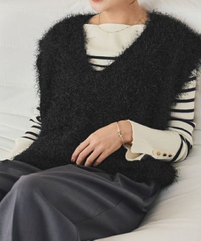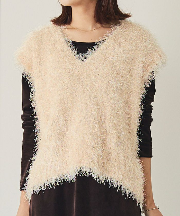 ・トレンドのラメ×ふんわりシャギーの今年らしい素材感が可愛い