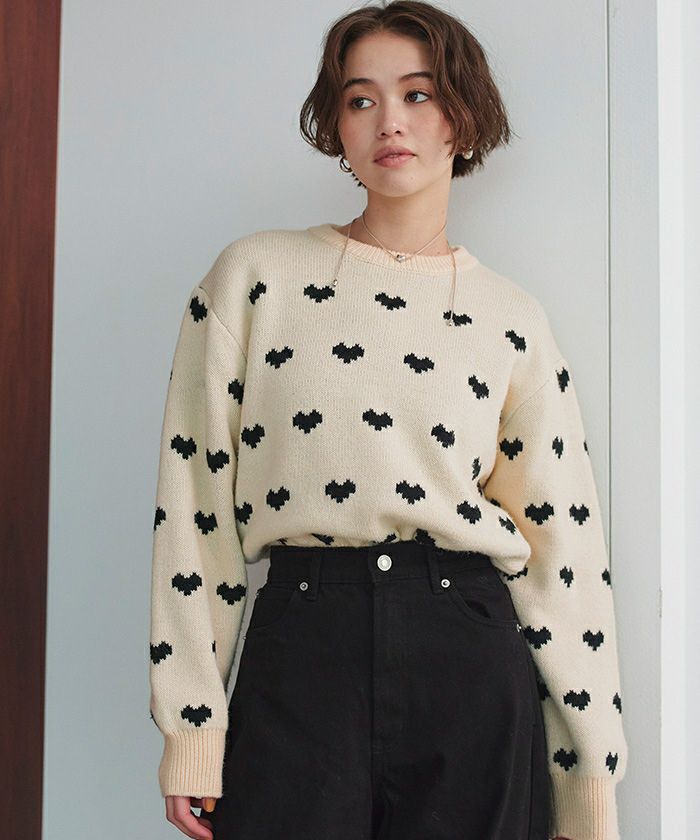 ・トレンド感のあるハートのジャガード柄編みがアクセント