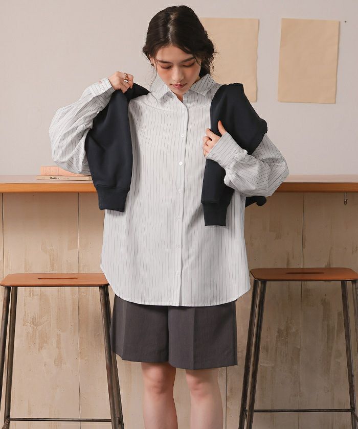 ・ストライプの縦ラインがスタイルアップを叶え、すっきり見えを演出