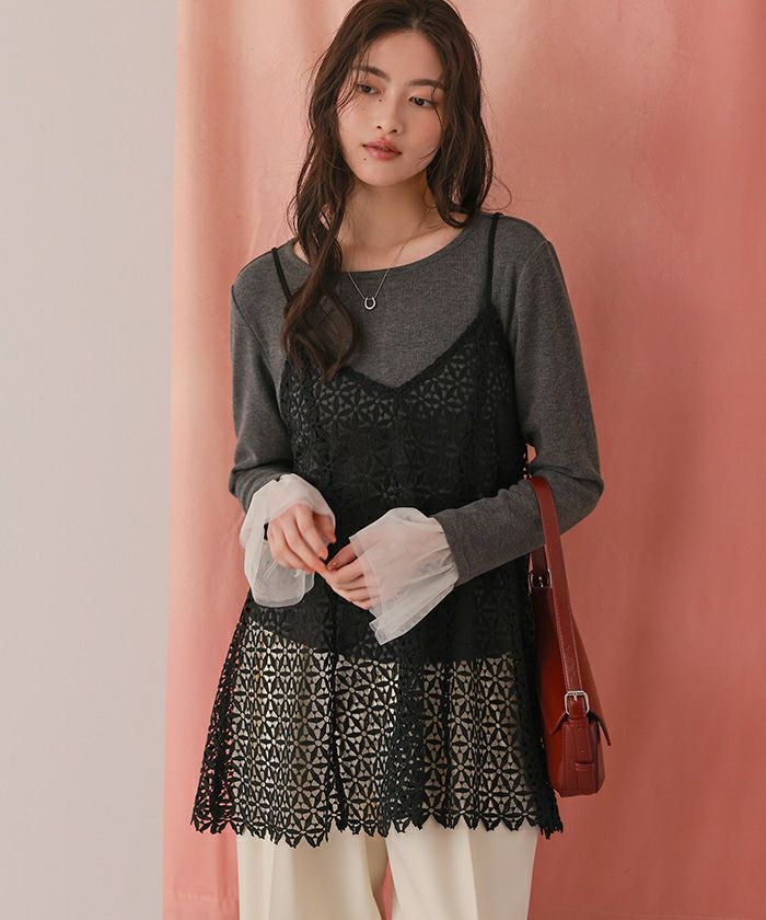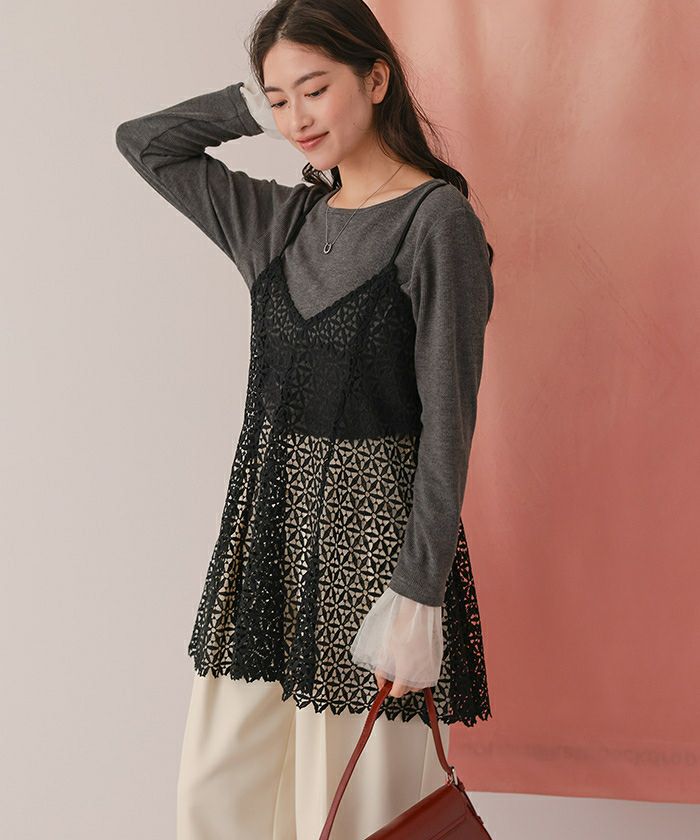 ・花柄レースを贅沢に使った、大人フェミニンなチュニックキャミソール