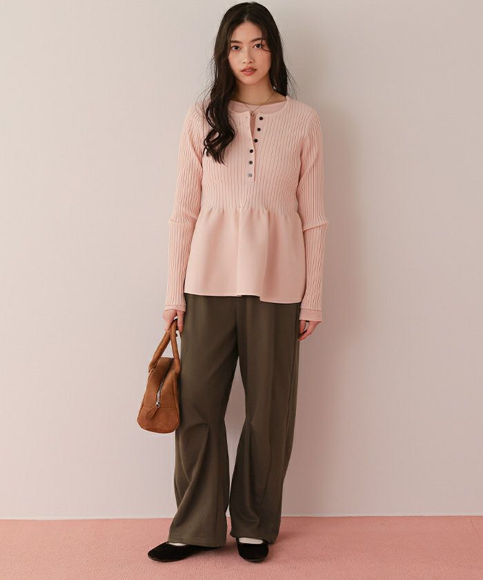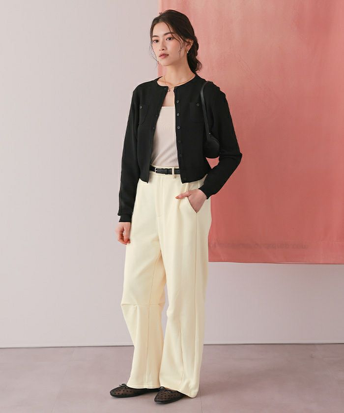 ・スウェット特有のカジュアルさは残しつつ、スラックスデザインがこなれ感を演出