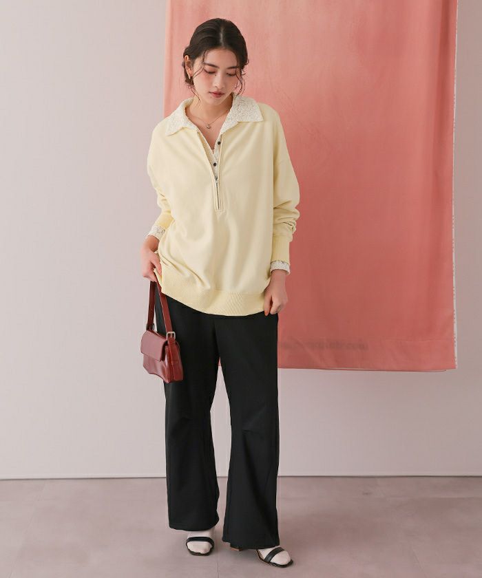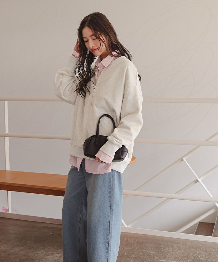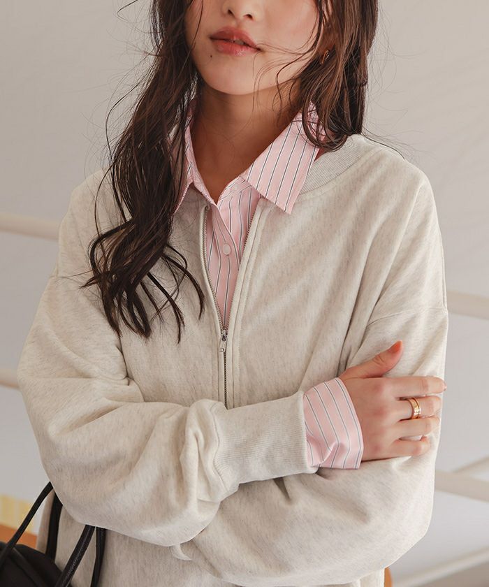 フロントジップゆるっとスウェットプルオーバー