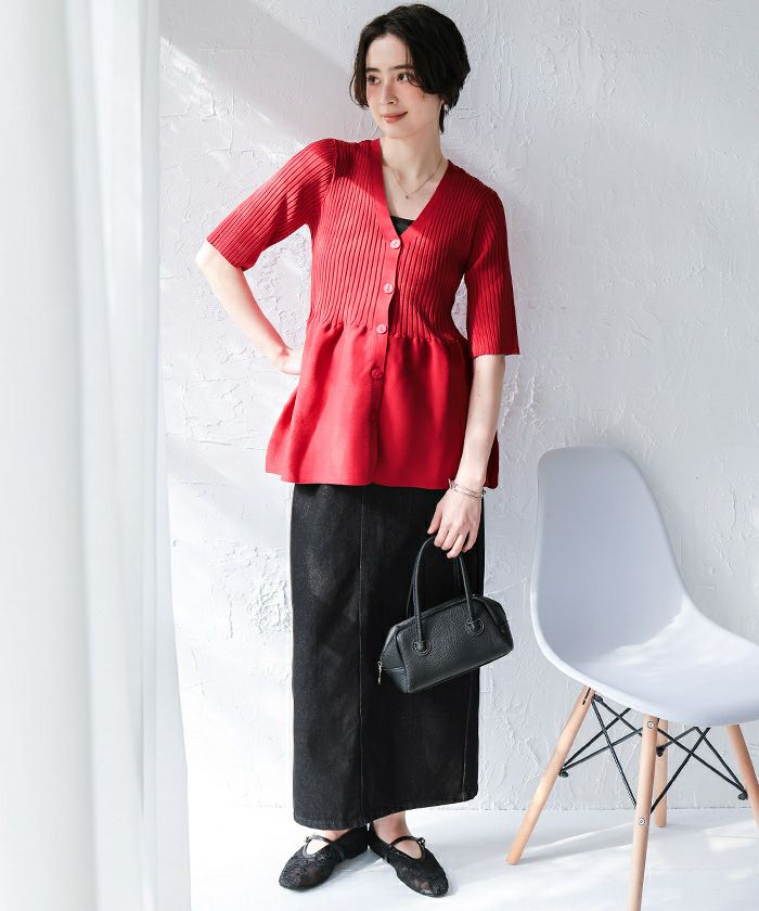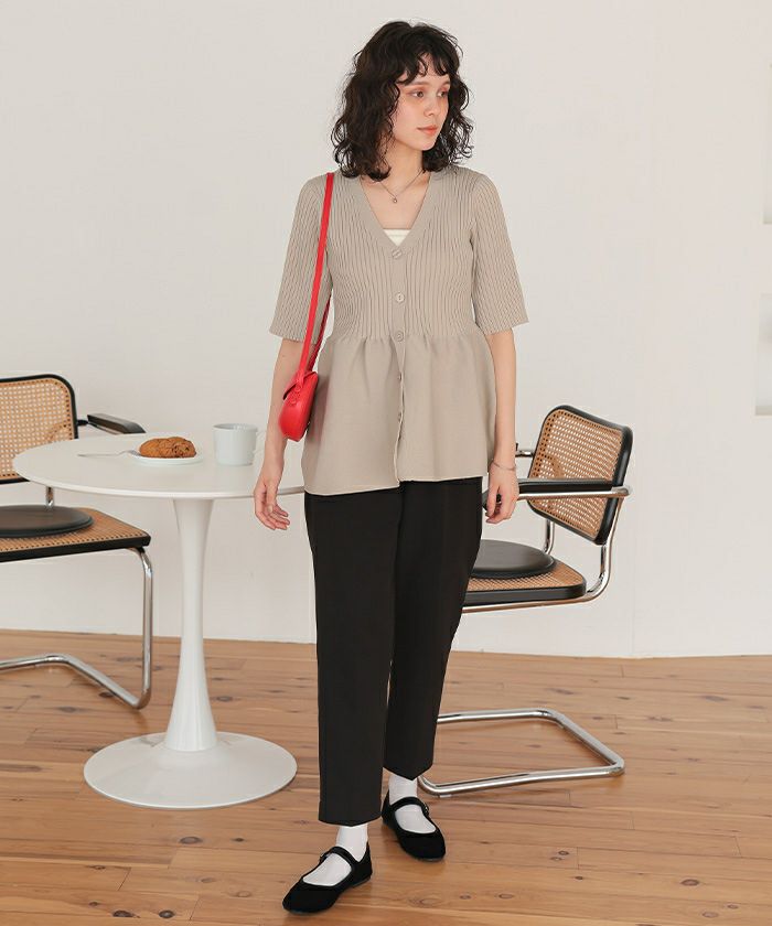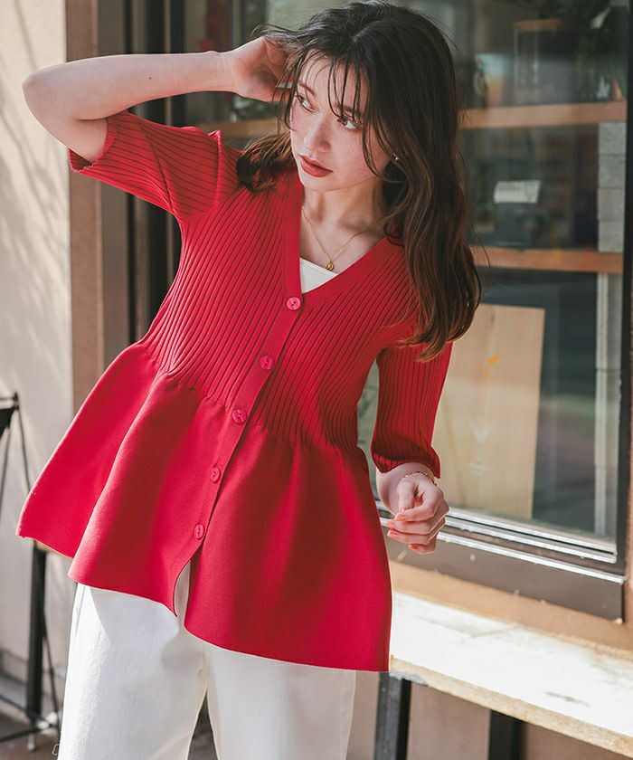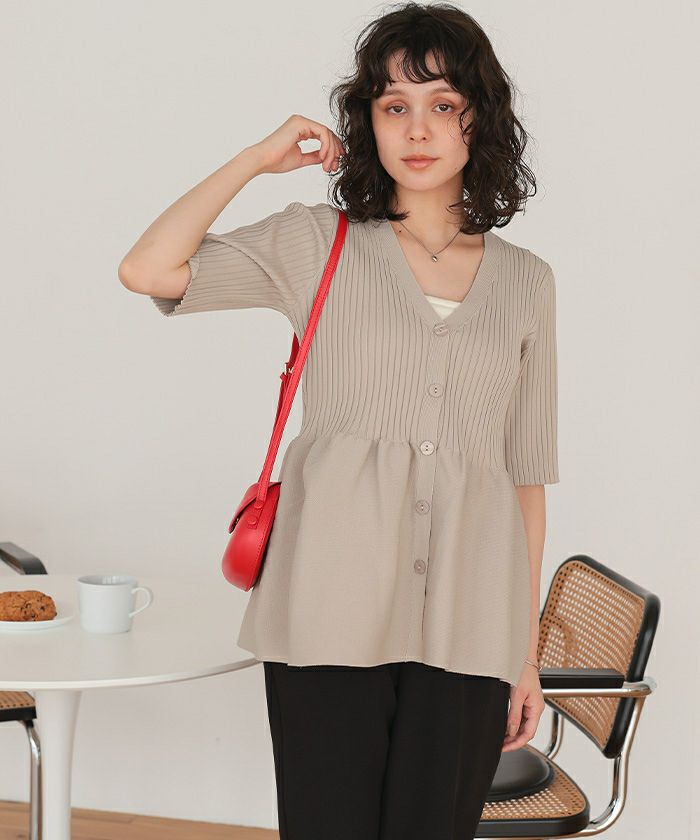 ・前後2wayで着用できる、ペプラムシルエットが女性らしいニットカーディガン