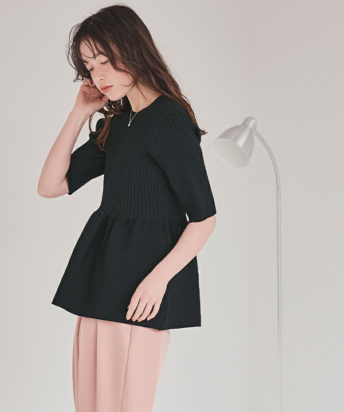 前後2wayペプラムニットトップス