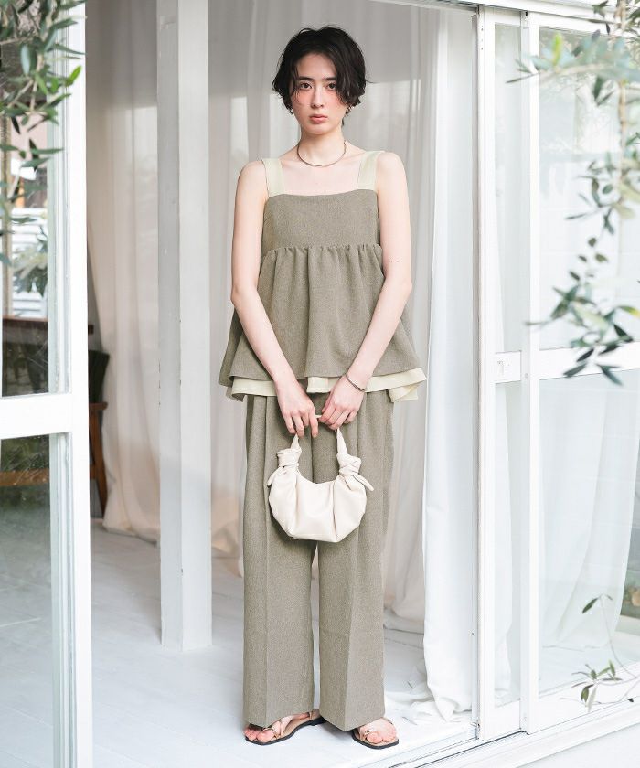 ・リネンライクな表情がシーズンムードを高める、軽やかで涼しげなペプラムトップス
