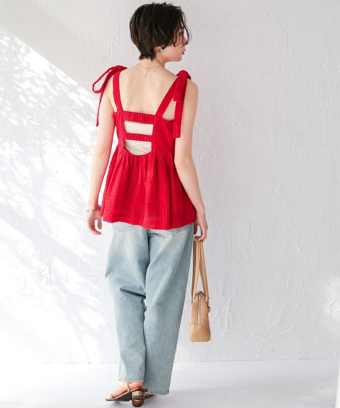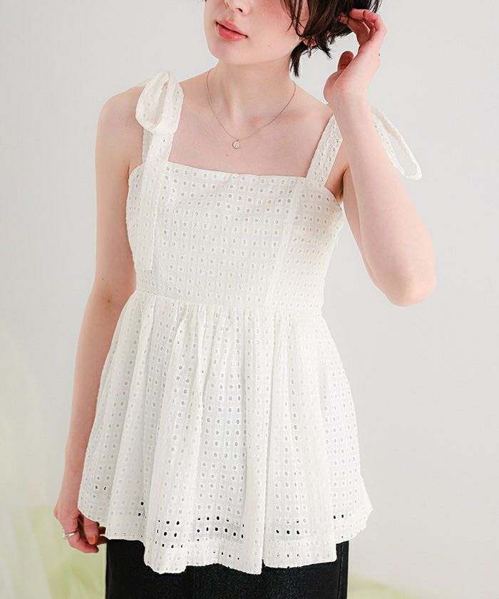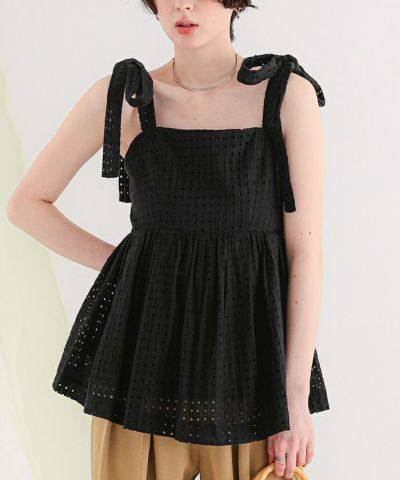 コットンレースペプラムリボントップス