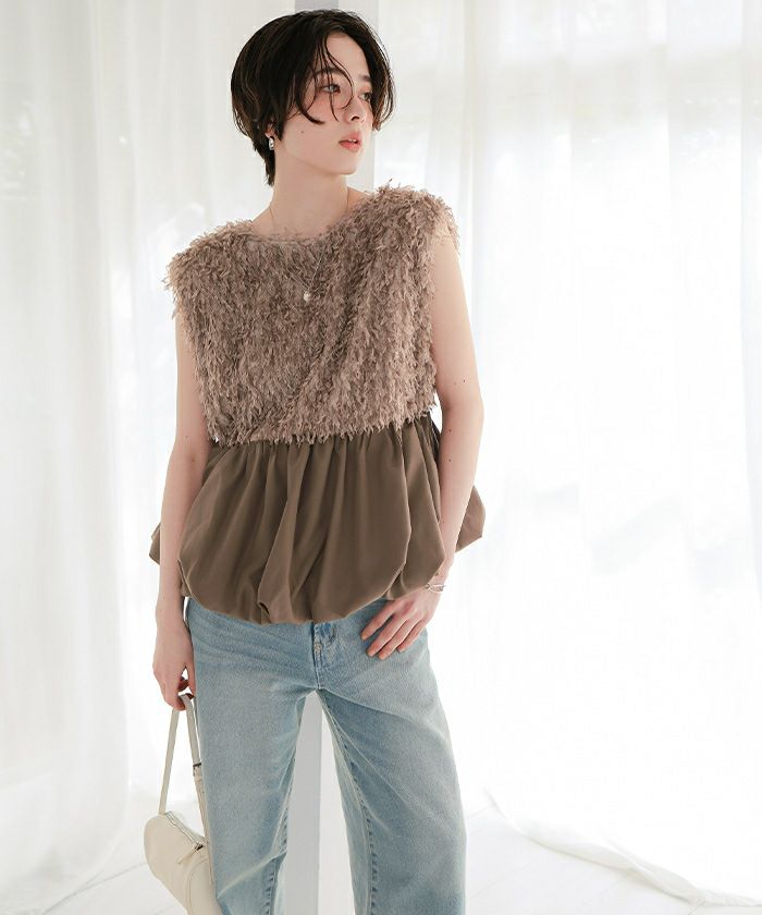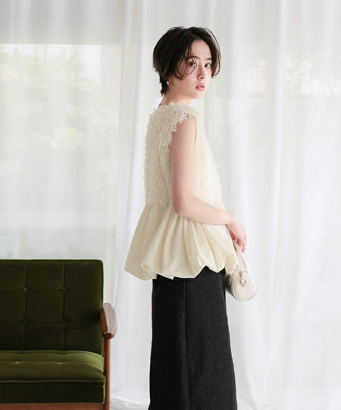 ・ふわっと揺れるフェザー素材が視線を引き寄せる、着るだけで華やぐ主役級ペプラムトップス