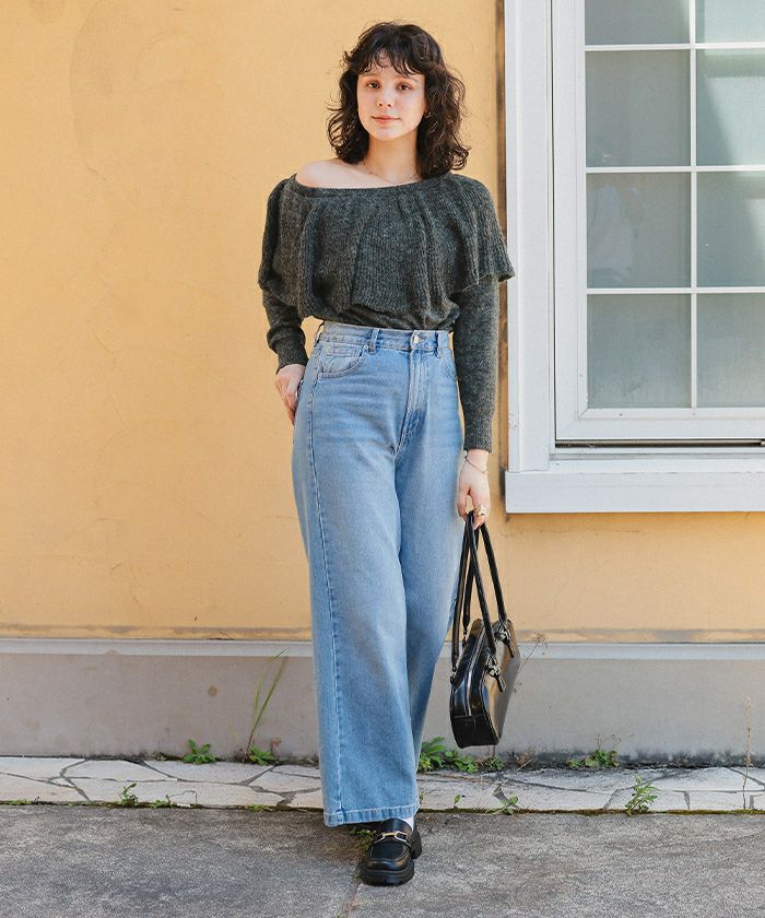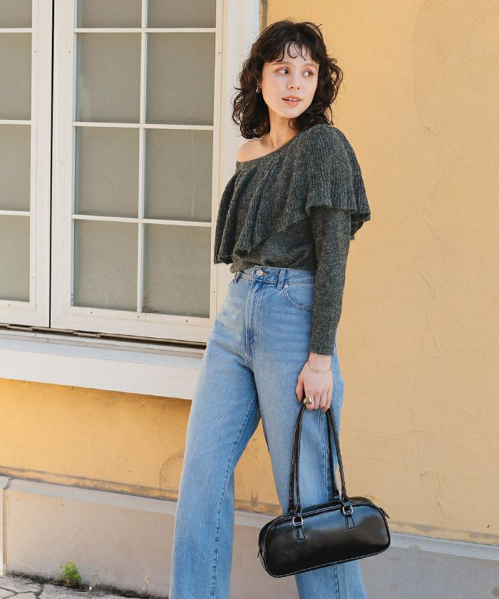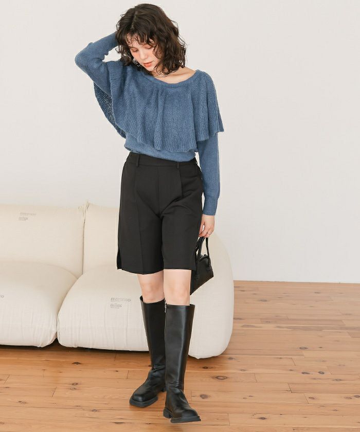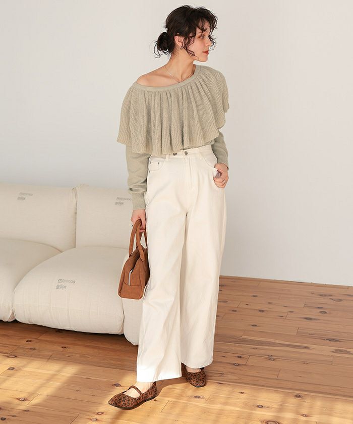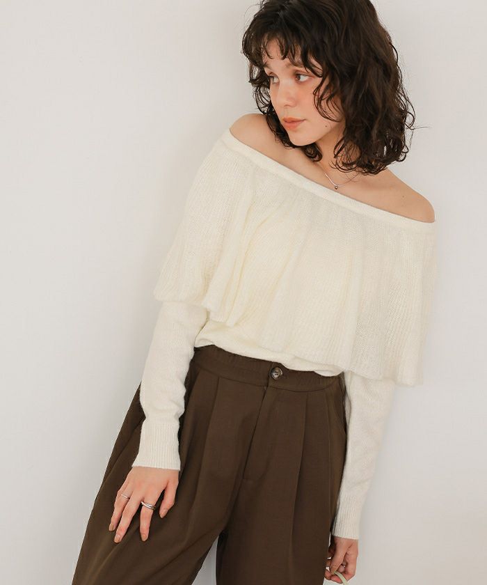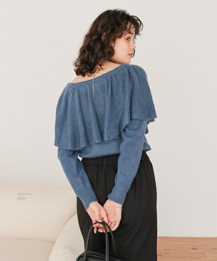 ウールブレンドマルチwayフリルニットトップス